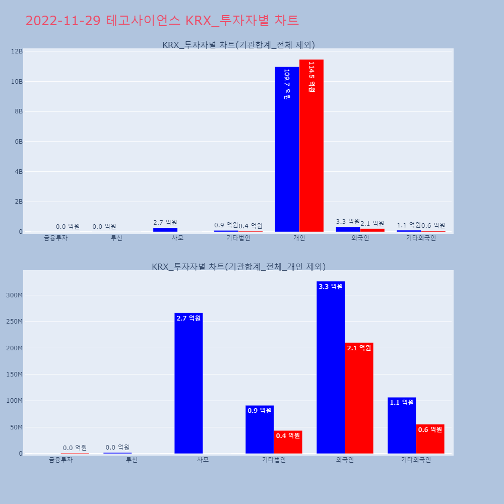 | 투자기관 | 거래량_매도 | 거래량_매수 | 거래량_순매수 | 거래대금_매도 | 거래대금_매수 | 거래대금_순매수 |