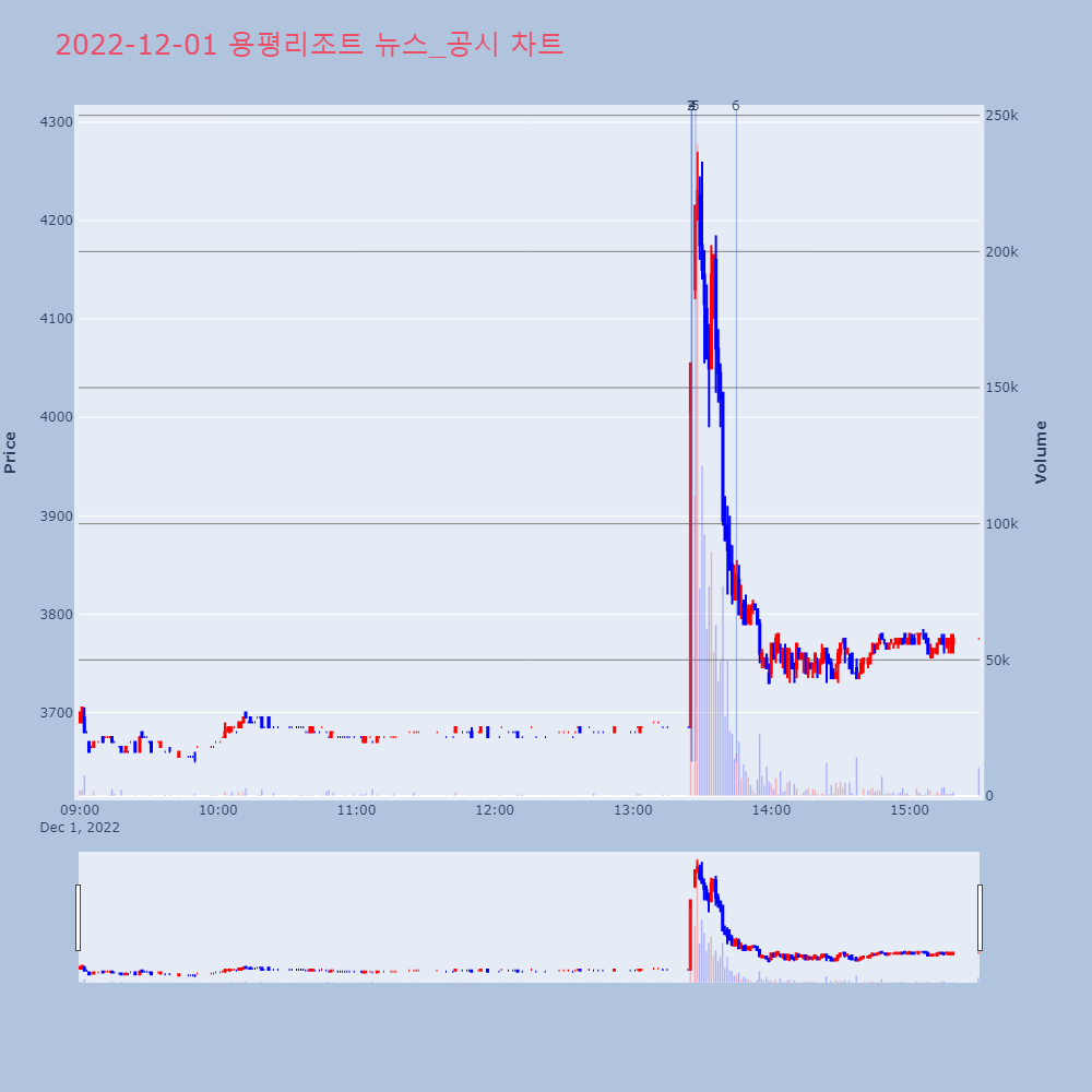 | 4 | 용평리조트, +11.40% VI 발동용평리조트가 VI가 발동했다. 전일 대비 11.40% | 조선경제 | 용평리조트 | 2022-12-01 13:25:43 |