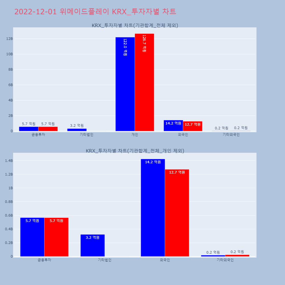 | 개인 | 131,271 | 84,383 | -46,888 | 23,514,165,500 | 15,085,572,500 | -8,428,593,000 |