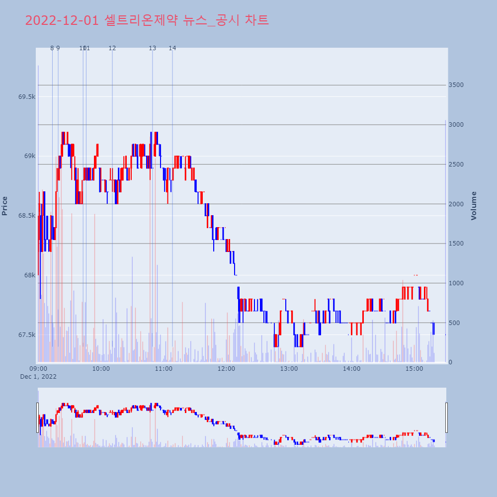 | 2 | 셀트리온(068270) 하락 출발 -0.28% 기업개요 생명공학기술 및 동물세포대량배양기술을 기반으 | 인포스탁 | 셀트리온 | 2022-11-30 09:00:50 |