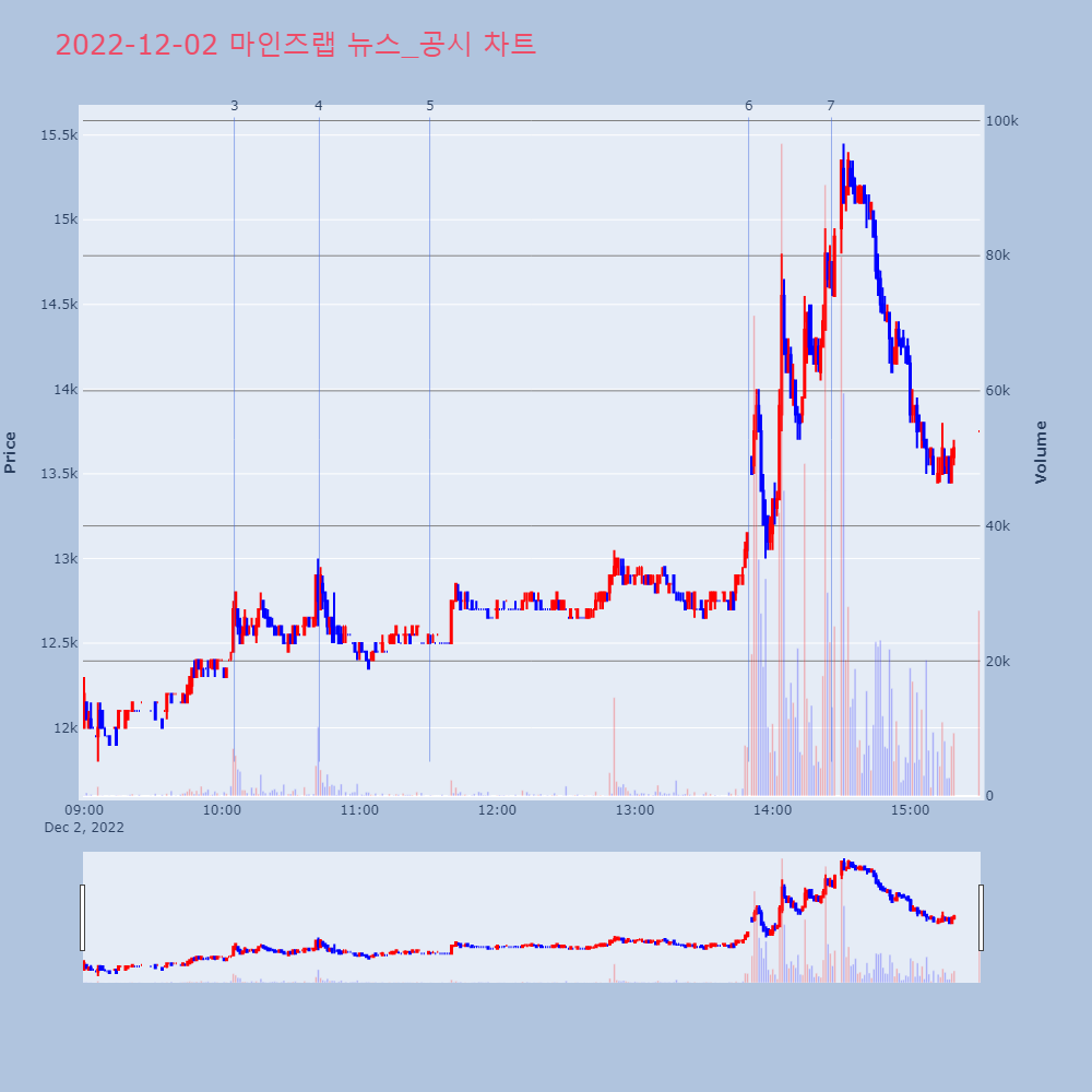 | 6 | 마인즈랩, +9.58% VI 발동마인즈랩이 VI가 발동했다. 전일 대비 9.58% 상승 | 조선경제 | 마인즈랩 | 2022-12-02 13:49:38 |