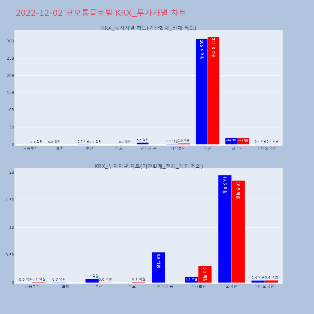 | 투자기관 | 거래량_매도 | 거래량_매수 | 거래량_순매수 | 거래대금_매도 | 거래대금_매수 | 거래대금_순매수 |