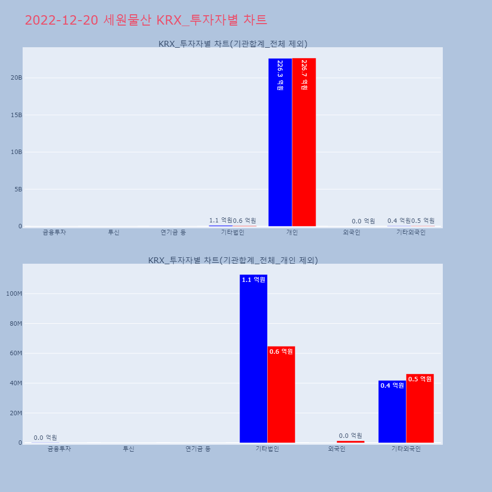 | 투자기관 | 거래량_매도 | 거래량_매수 | 거래량_순매수 | 거래대금_매도 | 거래대금_매수 | 거래대금_순매수 |