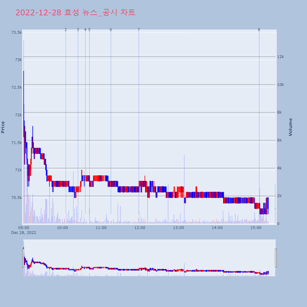 1 | [MK시그널] 오늘의 종목 분석 : 효성, 영원무역 안녕하세요. 국내 핫 이슈 종목을 분석해드리는 AI 기 | 매일경제 | 효성 | 2022-12-27 15:03:30 |