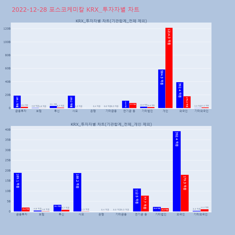 | 외국인 | 82,546 | 81,166 | -1,380 | 2,486,083,150 | 2,414,364,150 | -71,719,000 |