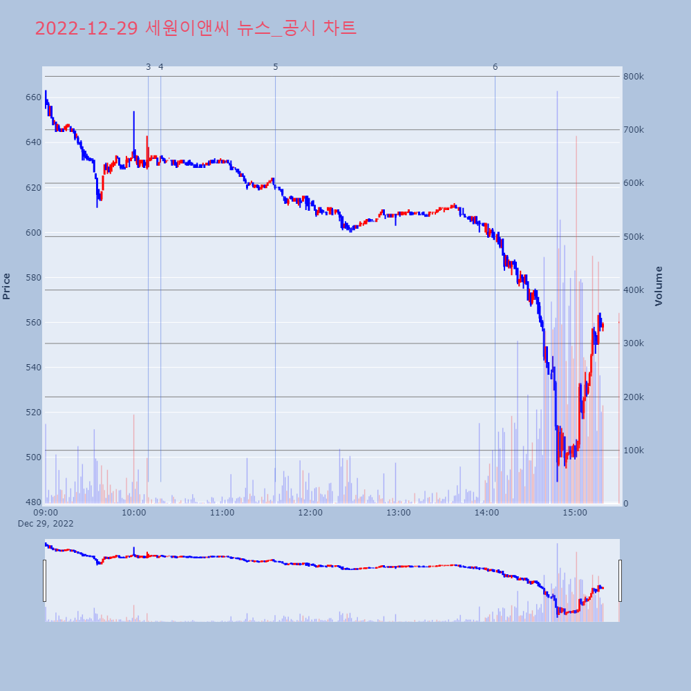 | 6 | 세원이앤씨, -8.54% VI 발동세원이앤씨가 VI가 발동했다. 전일 대비 8.54% 하 | 조선경제 | 세원이앤씨 | 2022-12-29 14:05:44 |