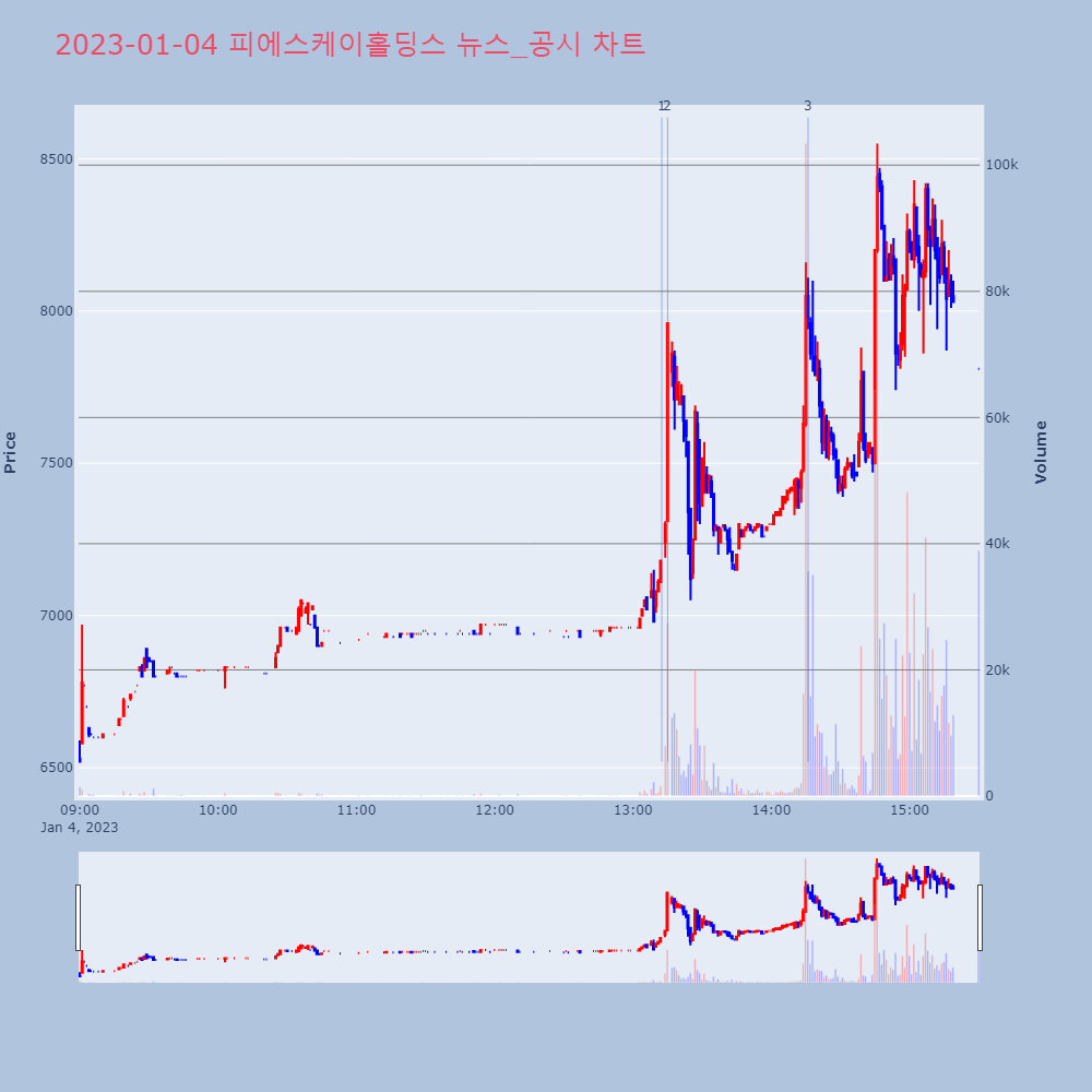 | 7 | [fnRASSI]장마감, 코스닥 상승 종목(한컴위드 30.0% ↑) 04일 코스닥 시장은 상승 1221개, 하락 258개, | 파이낸셜 | 피에스케이홀딩스 | 2023-01-04 15:54:01 |