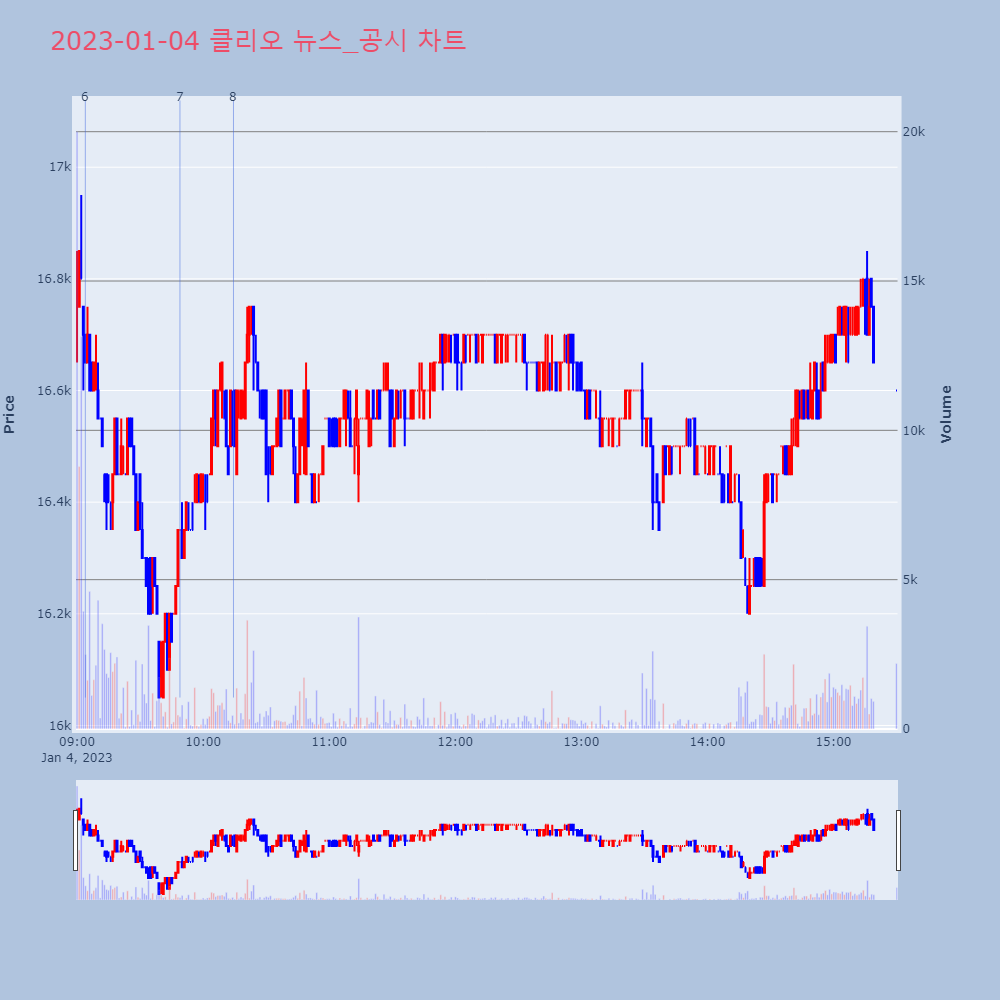 | 7 | 비츠로시스, 0.00% VI 발동비츠로시스가 VI가 발동했다. 현재 1,265원에 거래 | 조선경제 | 비츠로시스 | 2023-01-04 09:00:07 |