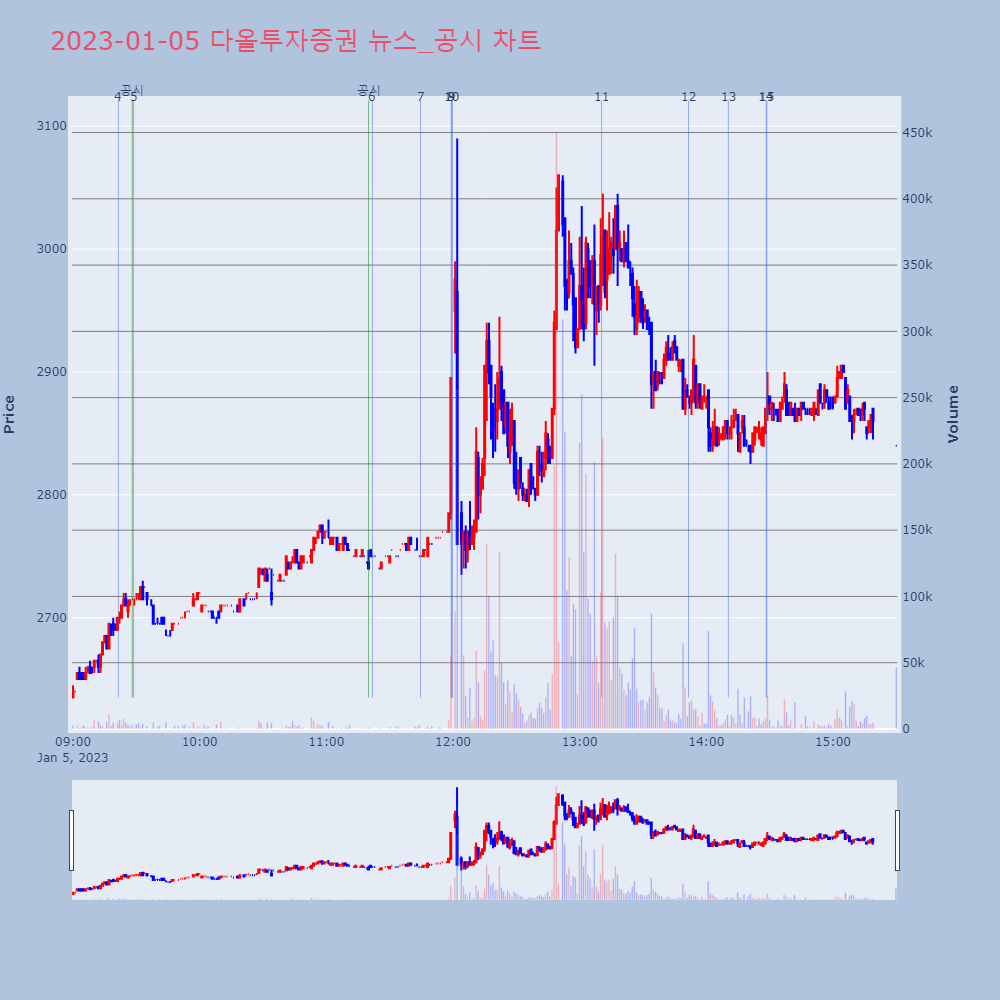 | 3 | [다올투자증권 데일리] DAOL Morning Brief 제목 : [다올투자증권 데일리] DAOL Morning | 인포스탁 | 다올투자증권 | 2023-01-05 08:45:01 |