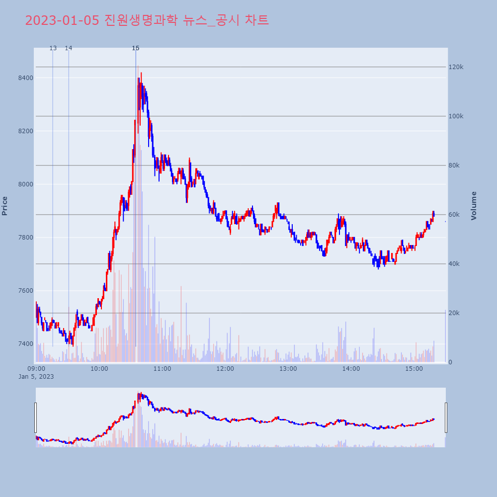 | 14 | 진원생명과학 “자회사 VGXI, JP모간 콘퍼런스 초청 참가”진원생명과학은 자회사인 VGXI가 JP모간 헬스케어 | 한경/정보/과학 | 진원생명과학 | 2023-01-05 09:30:55 |