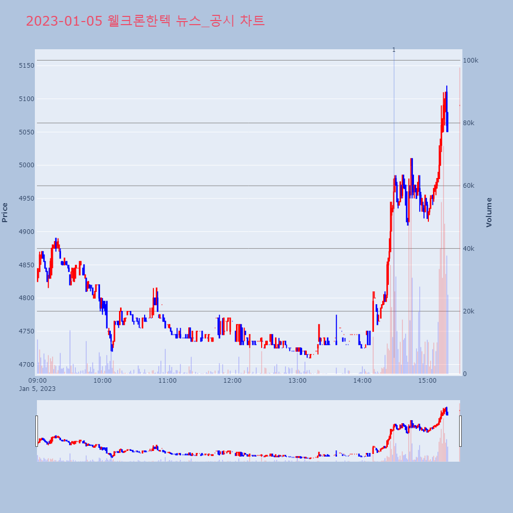 | 2 | [강세 토픽] 웹툰 테마, 핑거스토리 +6.82%, 미스터블루 +4.03%[웹툰] 테마가 강세다. 전일 대비 2.55% 상승세이 | 조선경제 | 미스터블루 | 2023-01-05 09:18:28 |