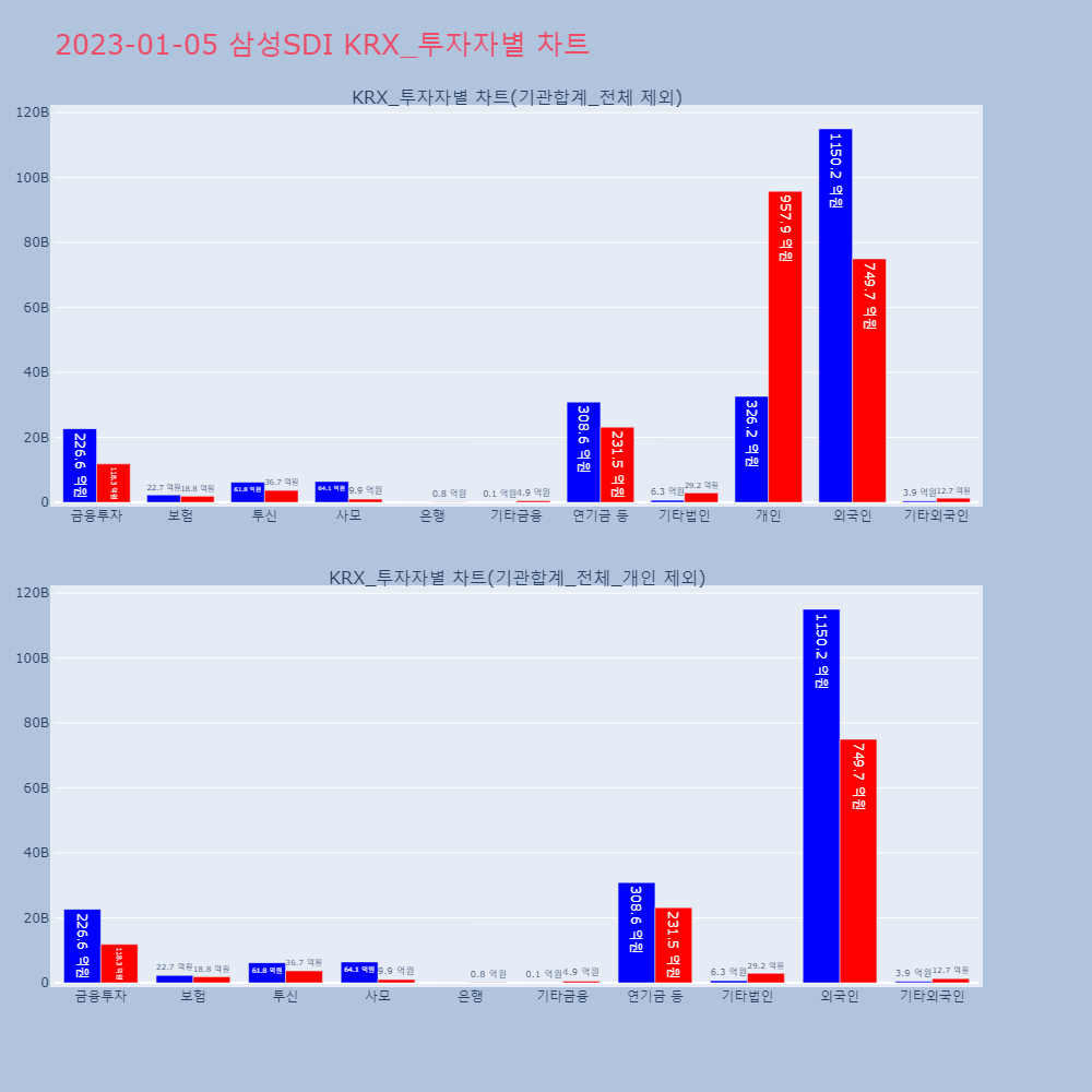 | 투자기관 | 거래량_매도 | 거래량_매수 | 거래량_순매수 | 거래대금_매도 | 거래대금_매수 | 거래대금_순매수 |