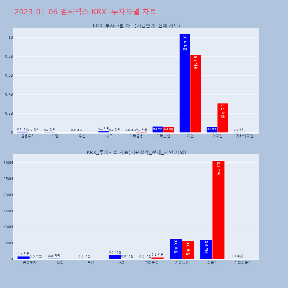 | 투자기관 | 거래량_매도 | 거래량_매수 | 거래량_순매수 | 거래대금_매도 | 거래대금_매수 | 거래대금_순매수 |