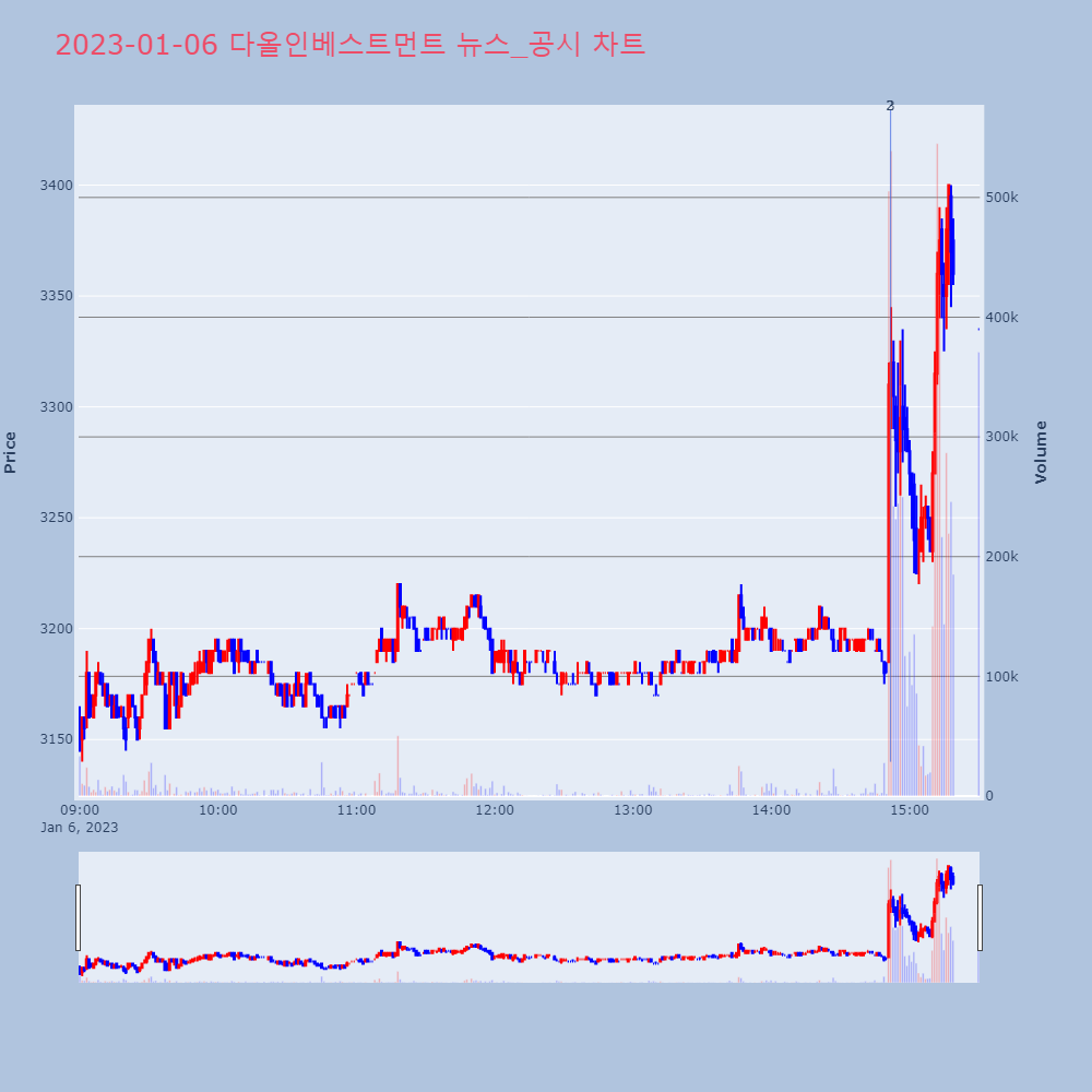 | 4 | [fnRASSI]SAMG엔터, 다우데이타 등 11종목 52주 신고가 경신 05일 SAMG엔터(419530), 다우데이타(0321 | 파이낸셜 | 세방 | 2023-01-05 15:37:07 |