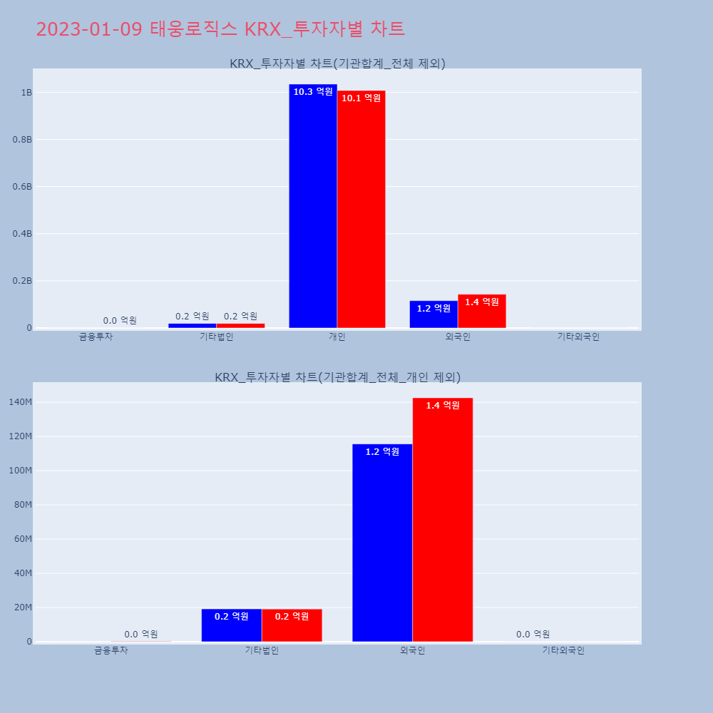 | 외국인 | 3,796 | 10,494 | 6,698 | 1,333,692,000 | 3,682,994,000 | 2,349,302,000 |