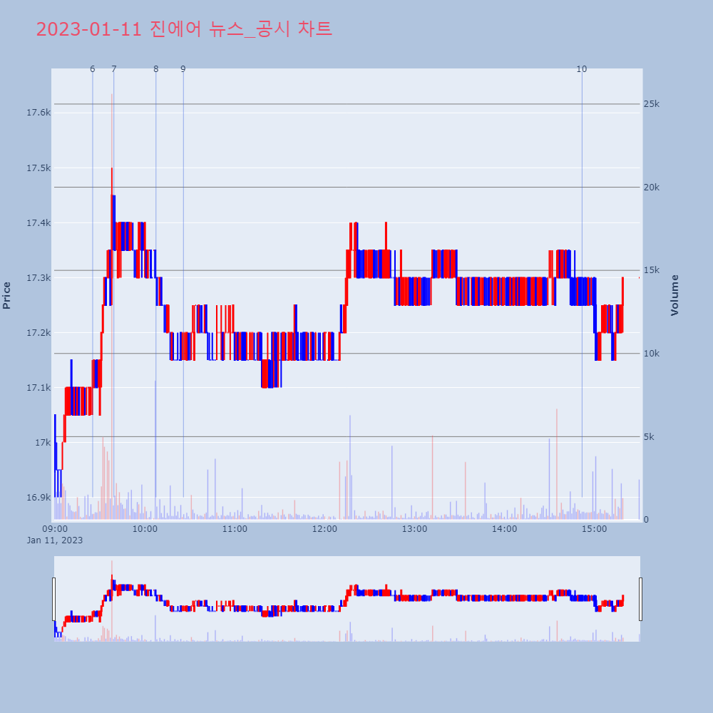 | 9 | [장중수급포착] 진에어, 기관 5일 연속 순매수행진... 주가 +2.08% [서울=뉴스핌] 로보뉴스 = 11일 10시 15분 현재 | 뉴스핌 | 진에어 | 2023-01-11 10:25:47 |