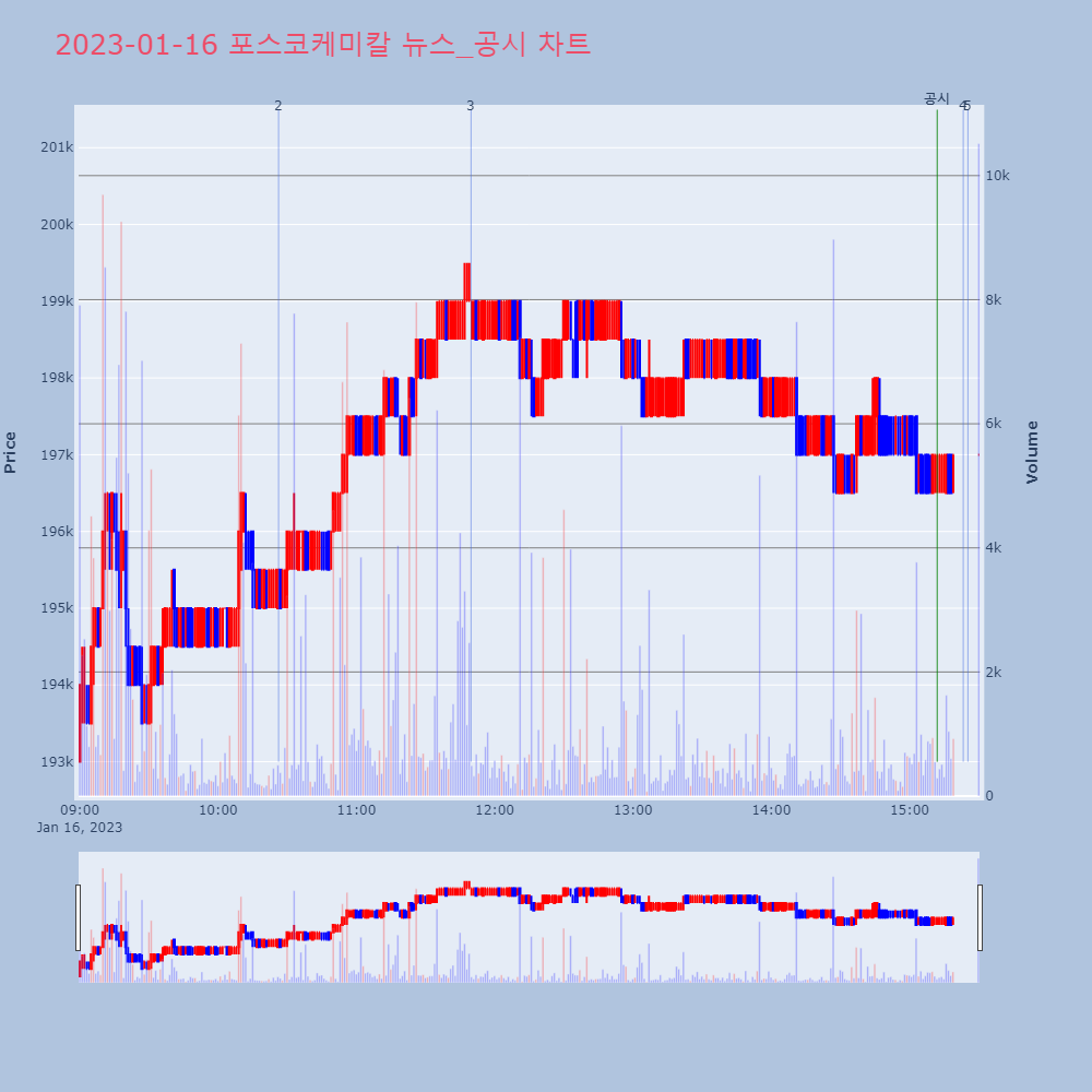 | 2 | [장중수급포착] 포스코케미칼, 외국인/기관 동시 순매수… 주가 +0.78% [서울=뉴스핌] 로보뉴스 = 16일 10시 15분 현재 | 뉴스핌 | 포스코케미칼 | 2023-01-16 10:26:15 |