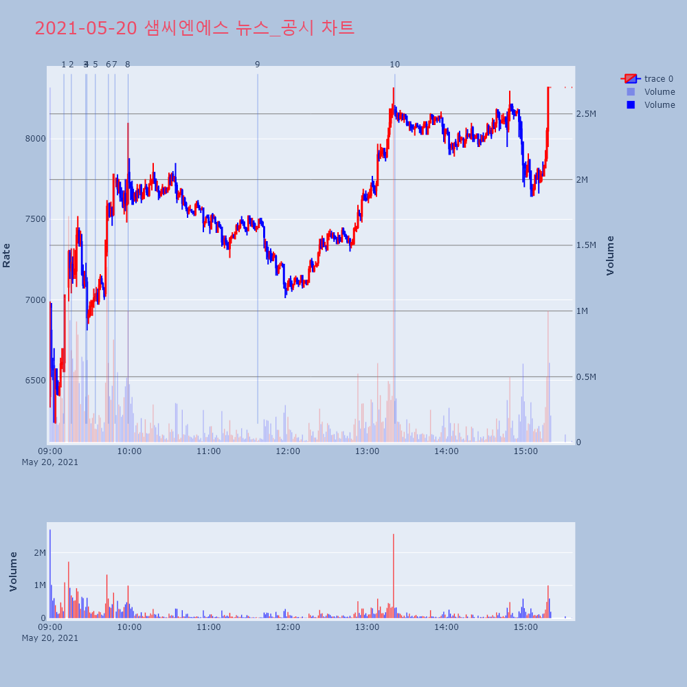 | 11 | 1 | [특징주]샘씨엔에스, 상장 첫 날 ‘강세’…시초가, 공모가 ‘하회’▶ 하이스탁론, 선취수수료 없는 월 0.2%대 최저금리 | 이데일리 | 샘씨엔에스 | 2021-05-20 09:10:27 |
