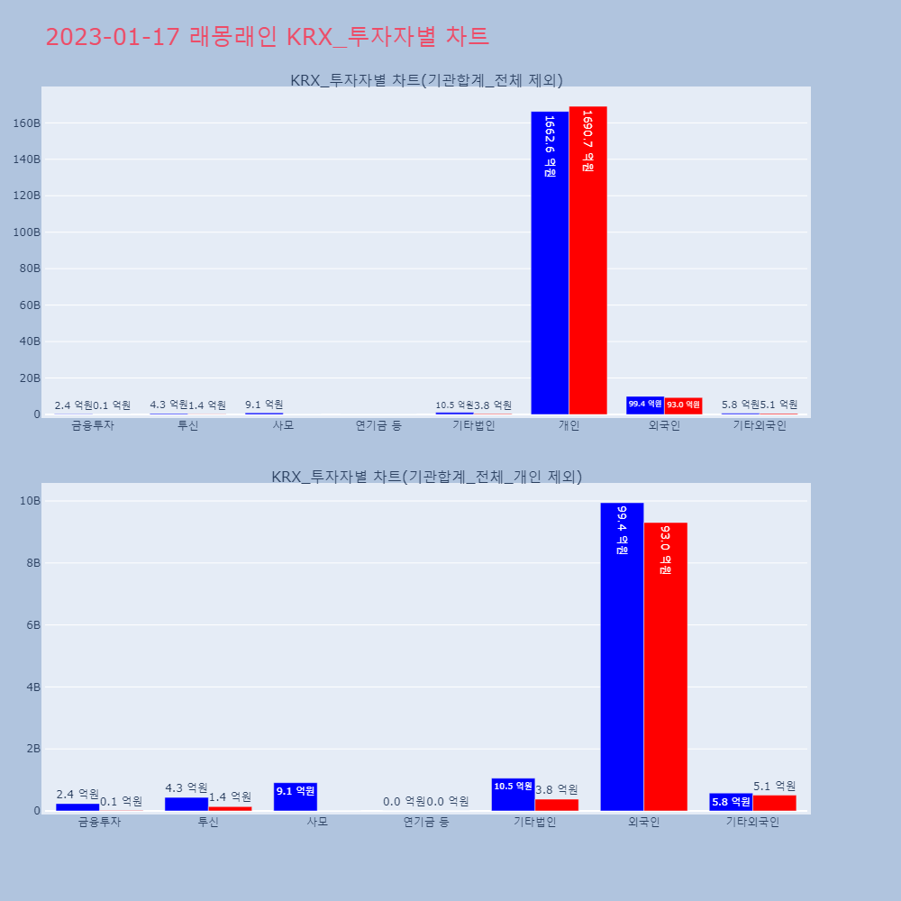 | 투자기관 | 거래량_매도 | 거래량_매수 | 거래량_순매수 | 거래대금_매도 | 거래대금_매수 | 거래대금_순매수 |