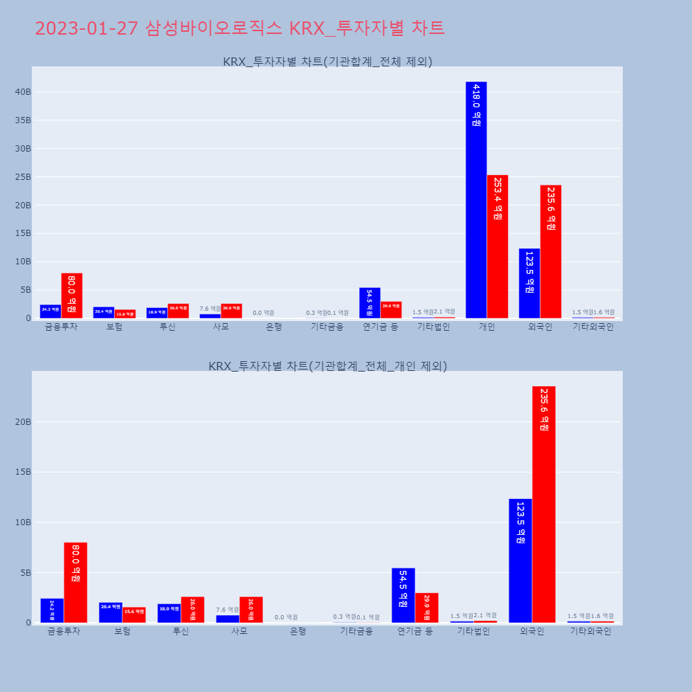 | 5 | [속보]삼성바이오로직스, 연매출 3조 달성…제약·바이오 최초[아시아경제 이춘희 기자]● 연말 개별종목 장세를 지배 | 아시아경제 | 삼성바이오로직스 | 2023-01-27 15:40:00 |