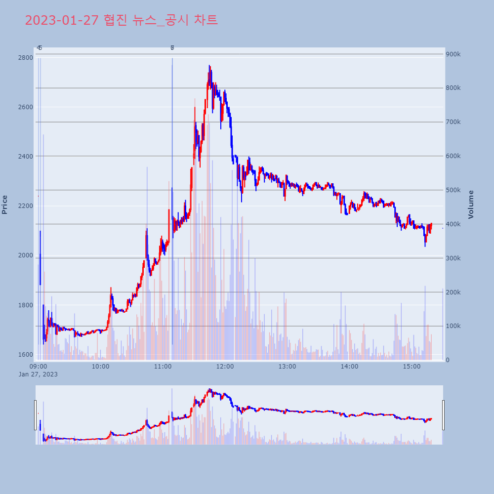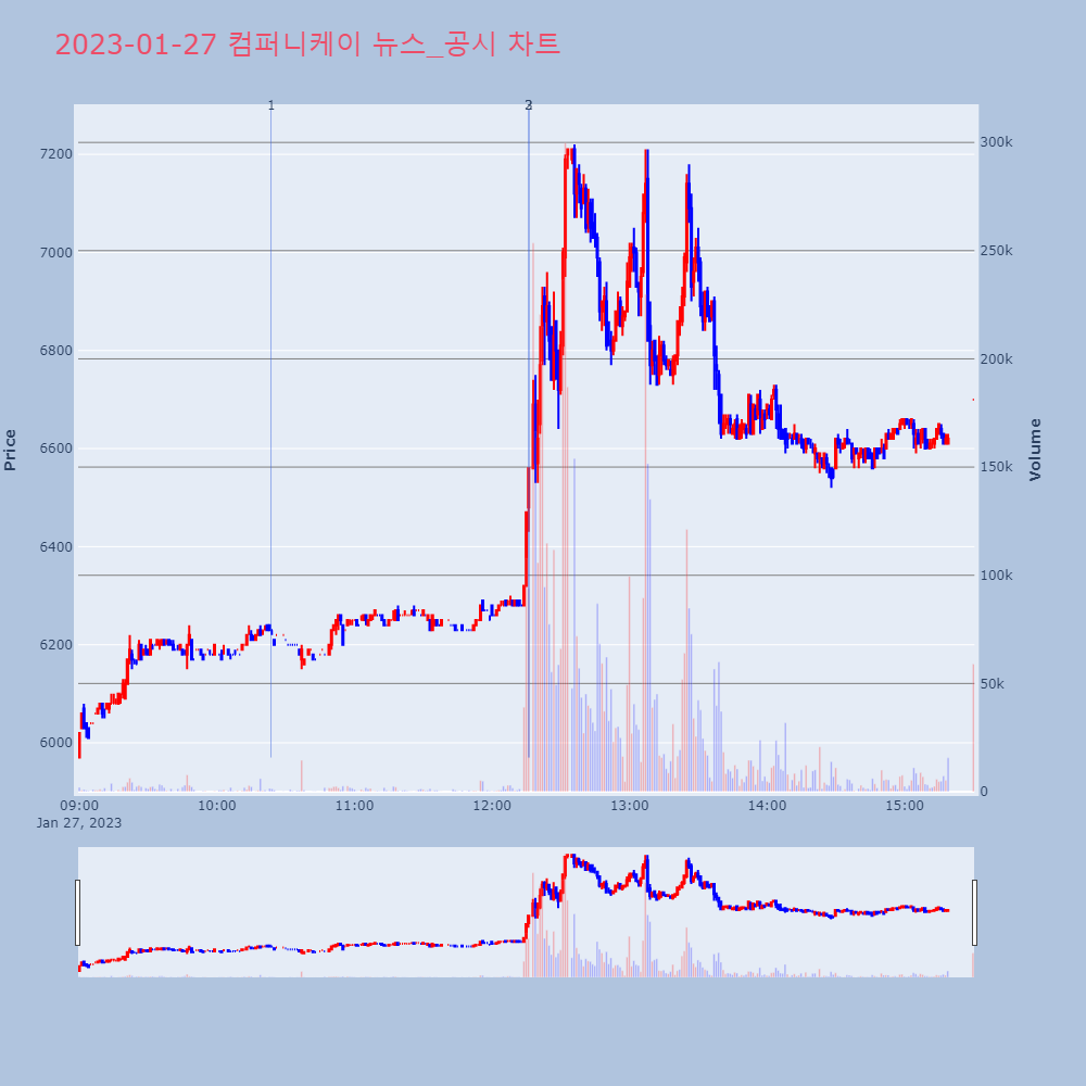 | 3 | 컴퍼니케이, +9.33% VI 발동컴퍼니케이가 VI가 발동했다. 전일 대비 9.33% 상 | 조선경제 | 컴퍼니케이 | 2023-01-27 12:16:12 |