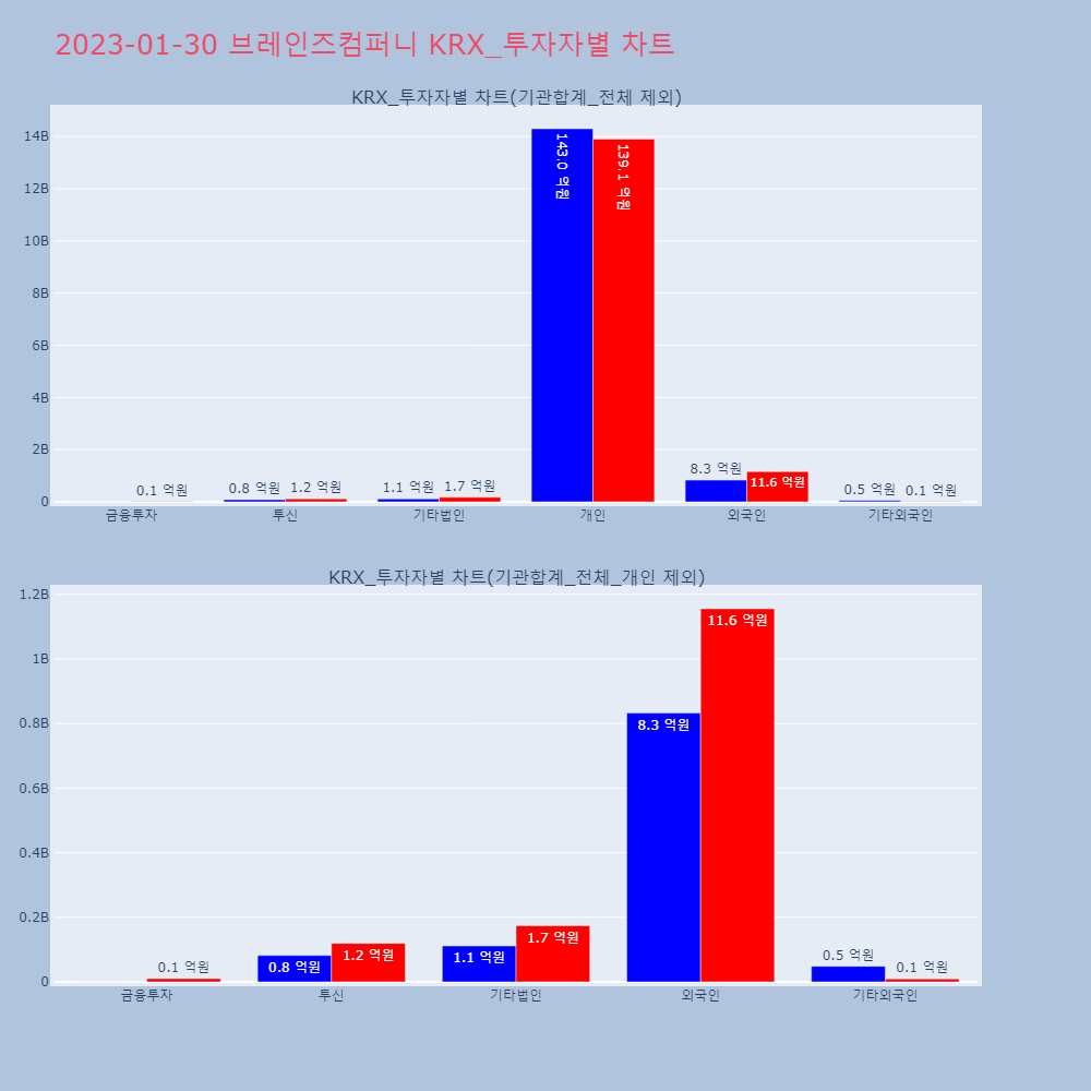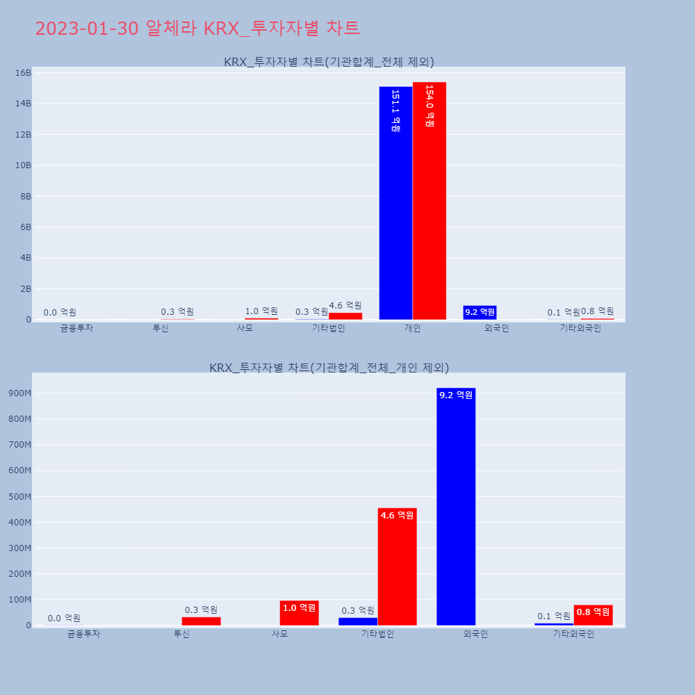 | 투자기관 | 거래량_매도 | 거래량_매수 | 거래량_순매수 | 거래대금_매도 | 거래대금_매수 | 거래대금_순매수 |