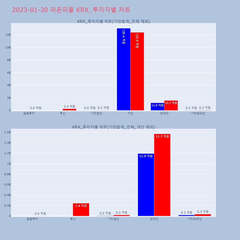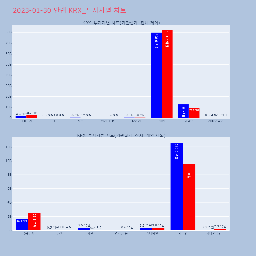 | 외국인 | 132,775 | 102,013 | -30,762 | 12,563,807,900 | 9,577,111,900 | -2,986,696,000 |