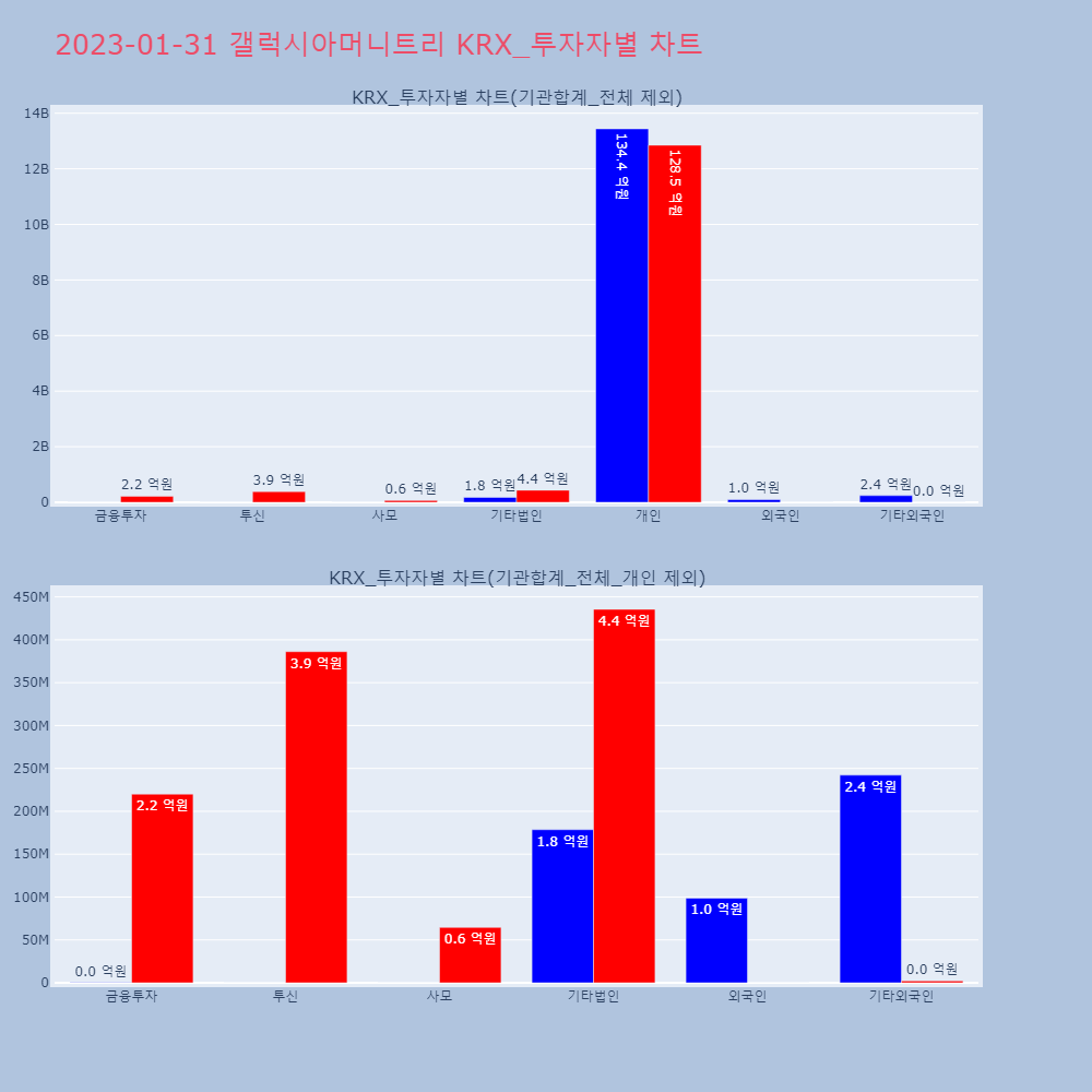 | 개인 | 172,098 | 115,335 | -56,763 | 19,117,998,000 | 12,743,196,900 | -6,374,801,100 |