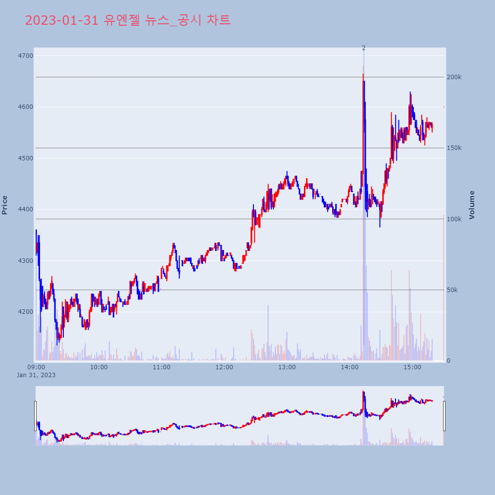 | 2 | 유엔젤, +1.56% 상승폭 확대유엔젤이 상승폭을 확대하고 있다. 전일 대비 1.56% | 조선경제 | 유엔젤 | 2023-01-31 14:13:40 |