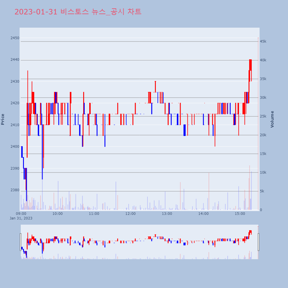 [비스토스(419540) (+10.0%)] (종가등락률:+1.45%)