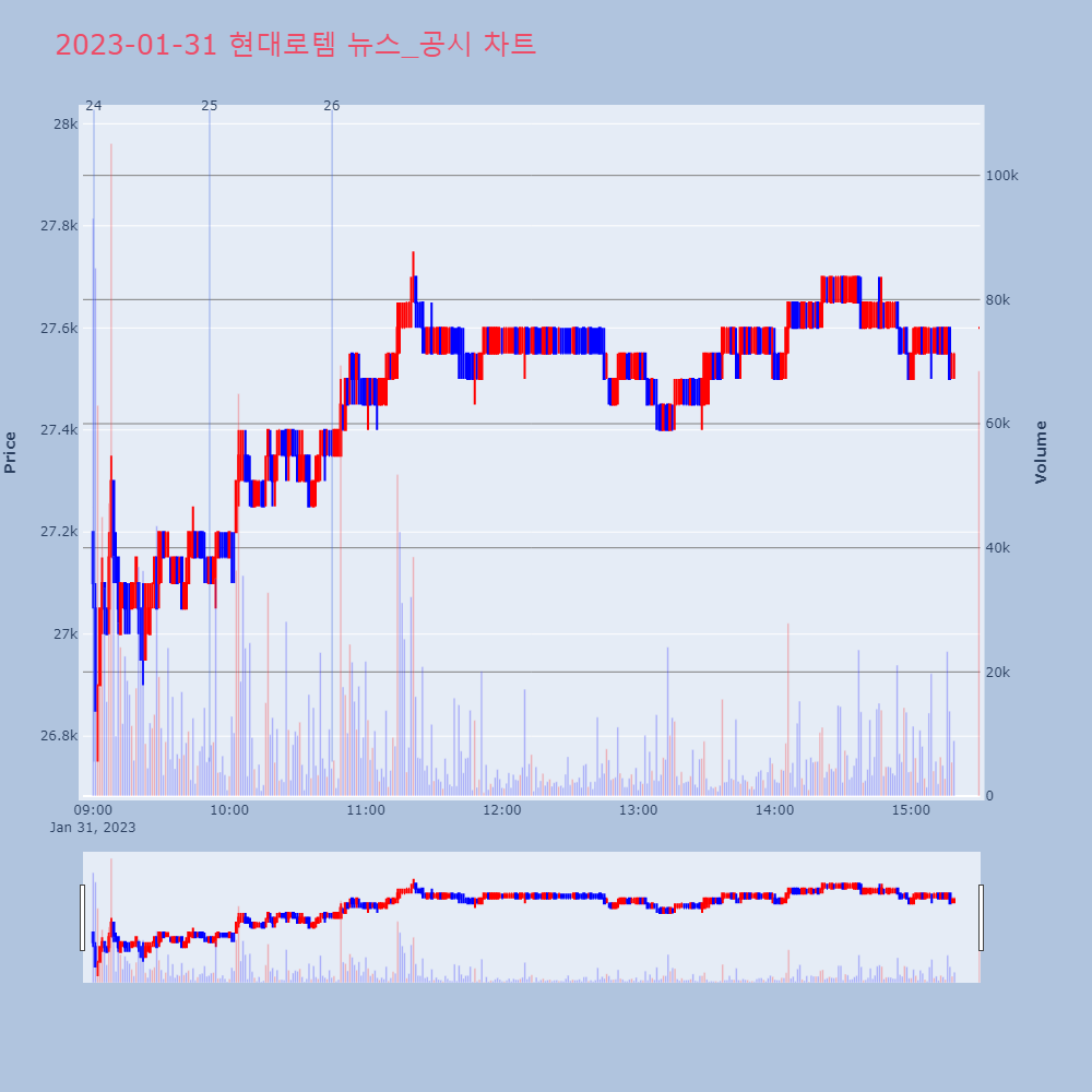 | 8 | [잠정실적]현대로템 전년동기 대비 매출 15%↑, 영업이익 97%↑... 영업이[서울=뉴스핌] 로보뉴스 = 현대로템의 영업이익률이 3 | 뉴스핌 | 현대로템 | 2023-01-30 11:02:11 |