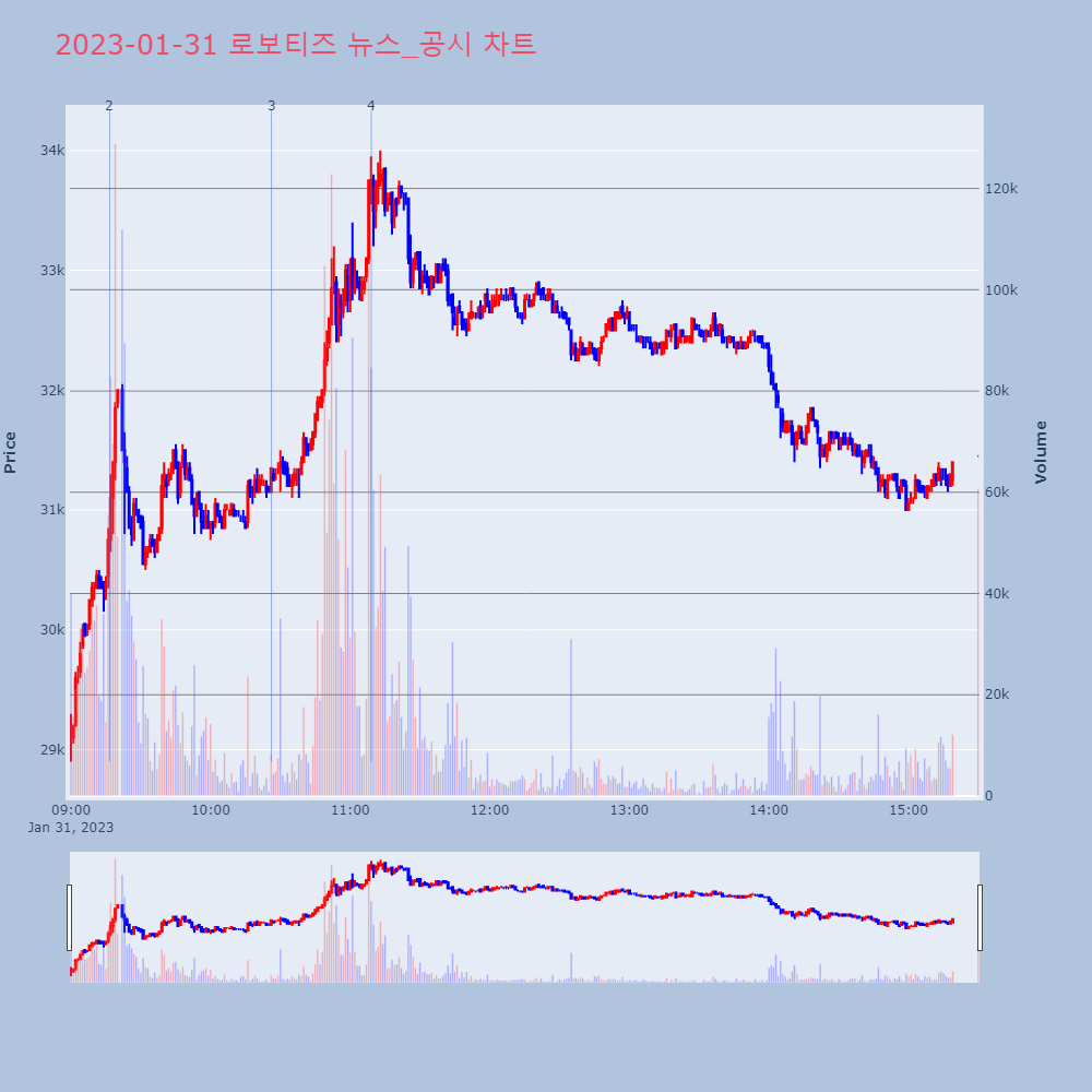 | 3 | [장중수급포착] 로보티즈, 외국인/기관 동시 순매수… 주가 +4.75% [서울=뉴스핌] 로보뉴스 = 31일 10시 15분 현재 | 뉴스핌 | 로보티즈 | 2023-01-31 10:26:09 |