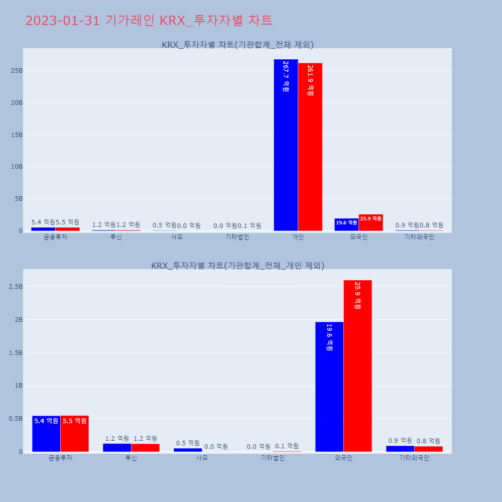| 투자기관 | 거래량_매도 | 거래량_매수 | 거래량_순매수 | 거래대금_매도 | 거래대금_매수 | 거래대금_순매수 |