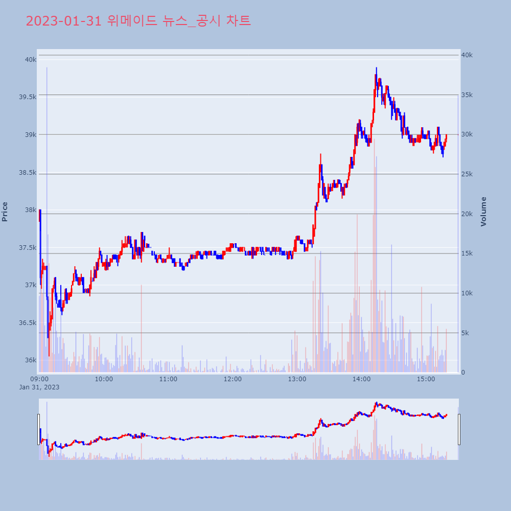 [위메이드(112040) (-1.54%)] (종가등락률:+2.23%)