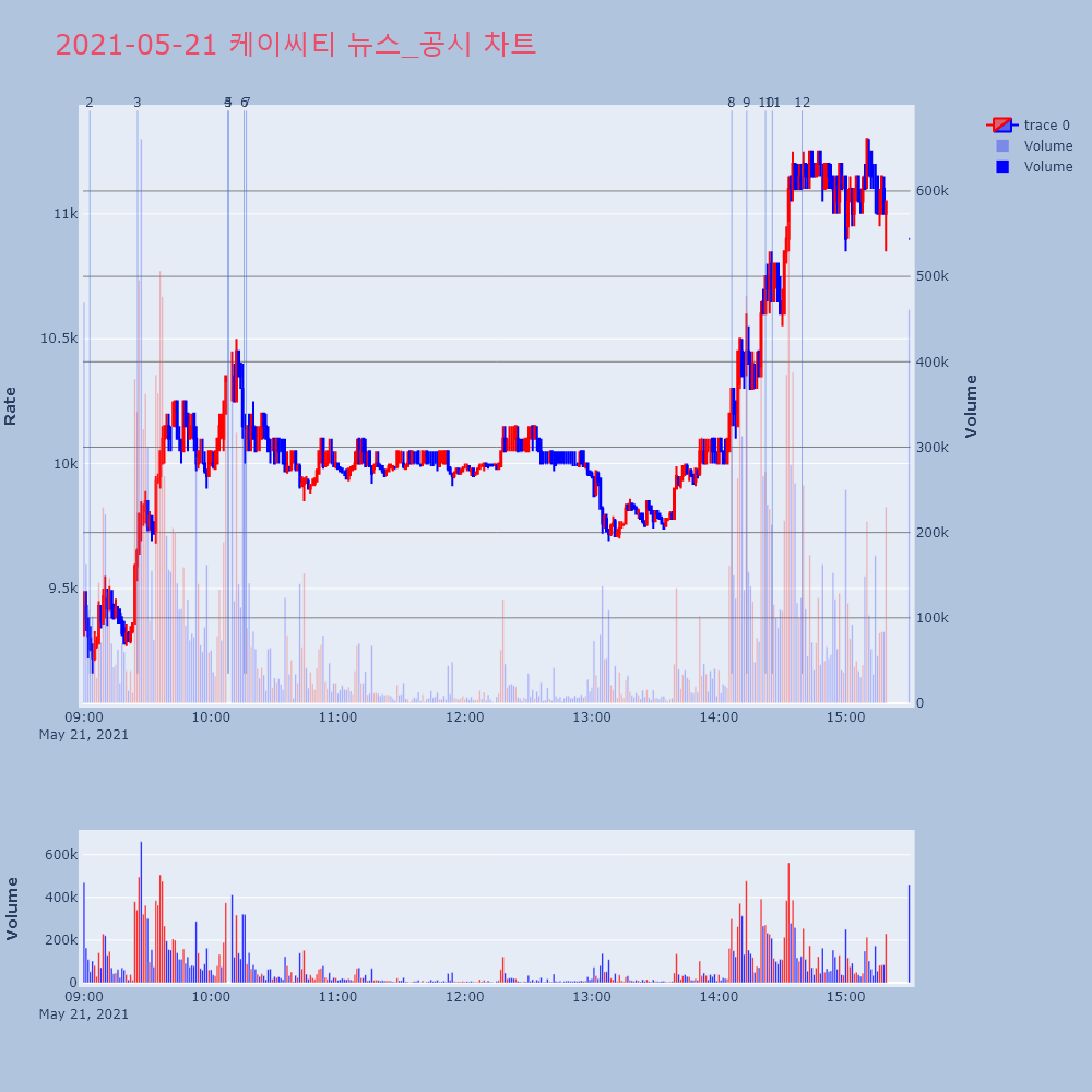 | 9 | 4 | 케이씨티, +17.61% VI 발동케이씨티(089150)가 VI가 발동했다. 전일 대비 | 조선경제 | 케이씨티 | 2021-05-21 10:08:01 |