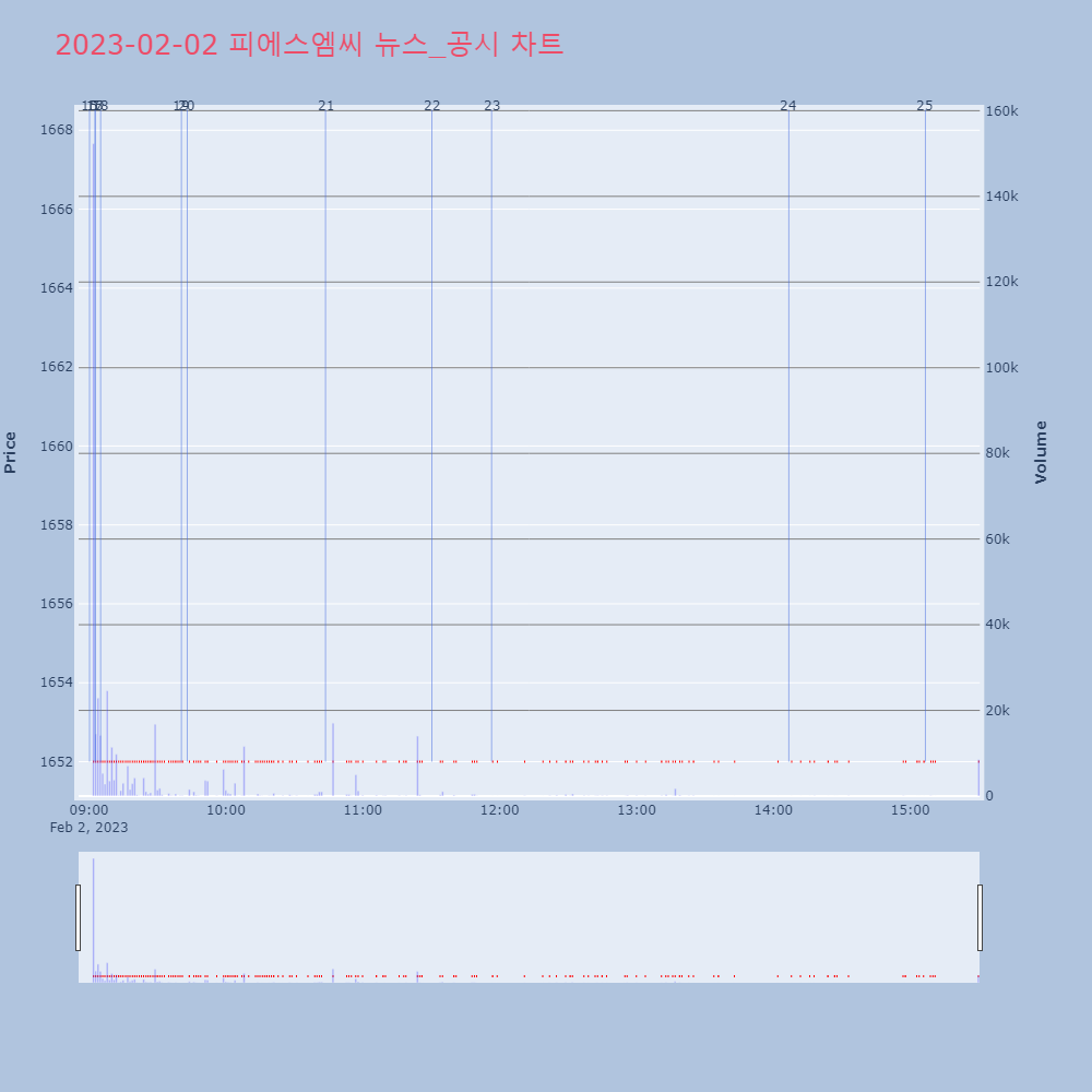 | 15 | 피에스엠씨, 0.00% VI 발동피에스엠씨가 VI가 발동했다. 현재 1,271원에 거래 | 조선경제 | 피에스엠씨 | 2023-02-02 09:00:15 |
