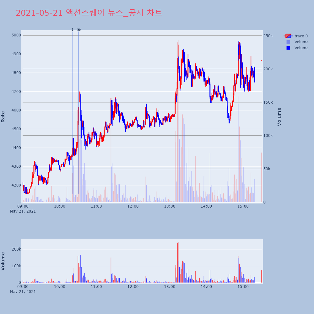 | 2 | 4 | 액션스퀘어, +11.20% VI 발동액션스퀘어(205500)가 VI가 발동했다. 전일 대비 | 조선경제 | 액션스퀘어 | 2021-05-21 10:31:39 |
