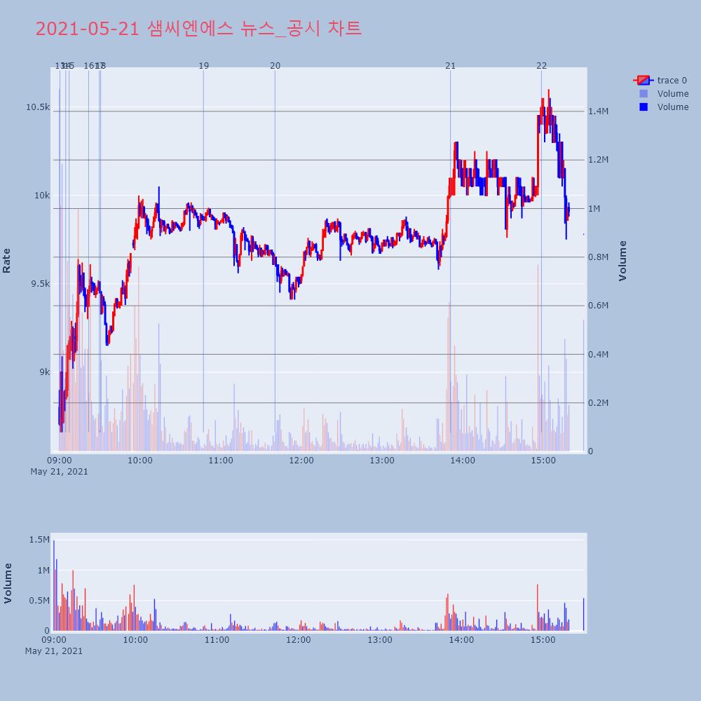 | 21 | 1 | [특징주]샘씨엔에스, 상장 첫 날 ‘강세’…시초가, 공모가 ‘하회’▶ 하이스탁론, 선취수수료 없는 월 0.2%대 최저금리 | 이데일리 | 샘씨엔에스 | 2021-05-20 09:10:27 |