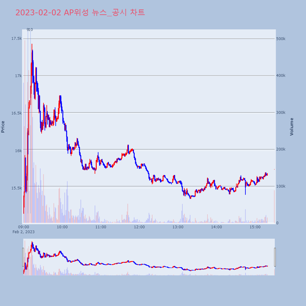 4 | [특징주] AP위성, 스페이스X·원웹 민간 우주기업 국내 진출 예정에 강세 제목 : [특징주] AP위성, 스페이스X·원웹 민간 우 | 인포스탁 | AP위성 | 2023-02-01 13:07:28 |