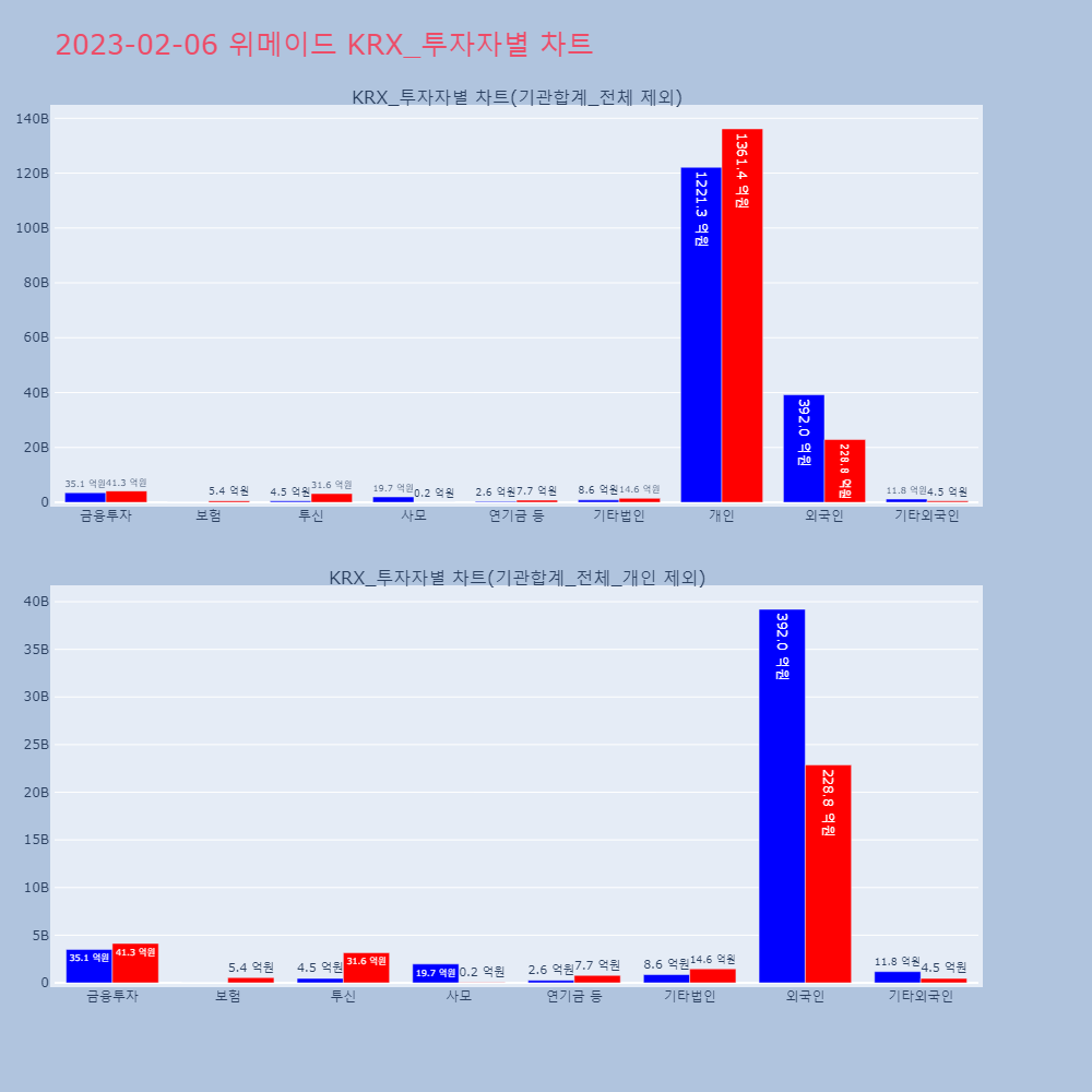 | 기타외국인 | 25,177 | 9,701 | -15,476 | 1,176,599,800 | 454,286,450 | -722,313,350 |