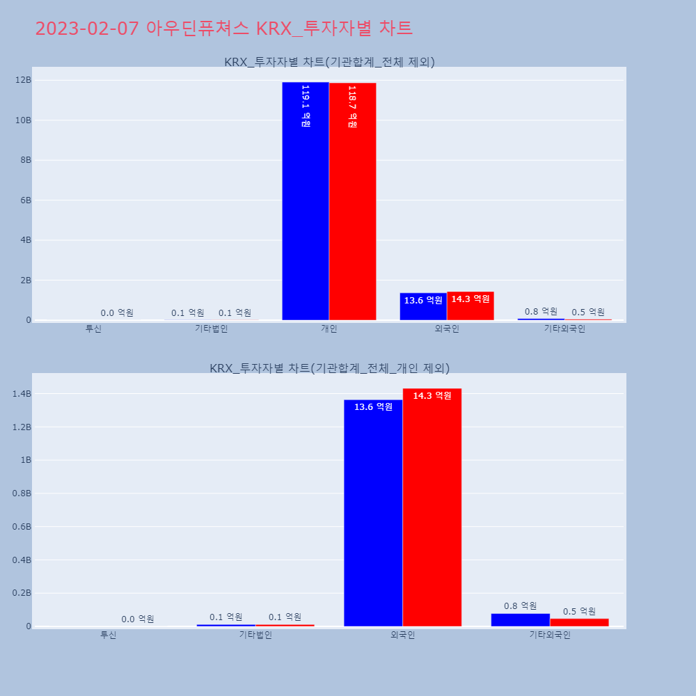 | 투자기관 | 거래량_매도 | 거래량_매수 | 거래량_순매수 | 거래대금_매도 | 거래대금_매수 | 거래대금_순매수 |