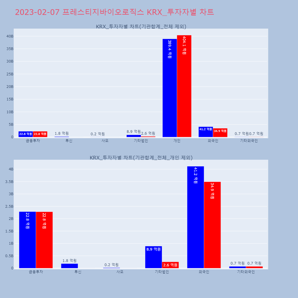 | 3 | 프레스티지바이오로직스, +9.31% VI 발동프레스티지바이오로직스가 VI가 발동했다. 전일 대비 9 | 조선경제 | 프레스티지바이오로직스 | 2023-02-07 13:41:02 |