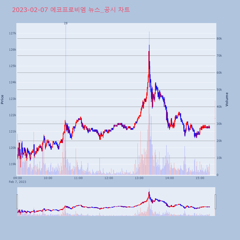 | 18 | 에코프로(086520) 상승폭 확대 +19.35%, 신고가 경신, 5거래일 연속 상승 기업개요 기존 에코프로가 환경사업 부문을 인적분할함에 | 인포스탁 | 에코프로 | 2023-02-07 13:19:32 |