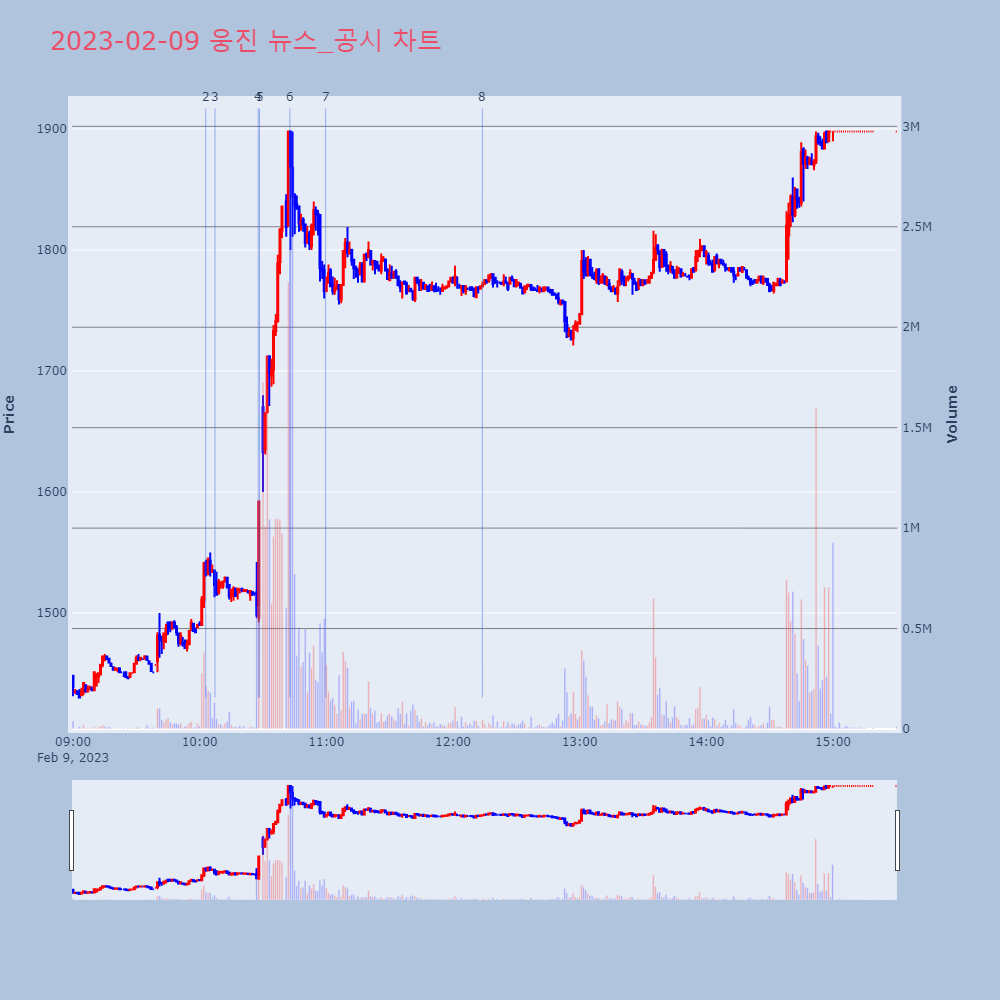 | 5 | 웅진, +8.77% VI 발동웅진이 VI가 발동했다. 전일 대비 8.77% 상승한 | 조선경제 | 웅진 | 2023-02-09 10:28:21 |