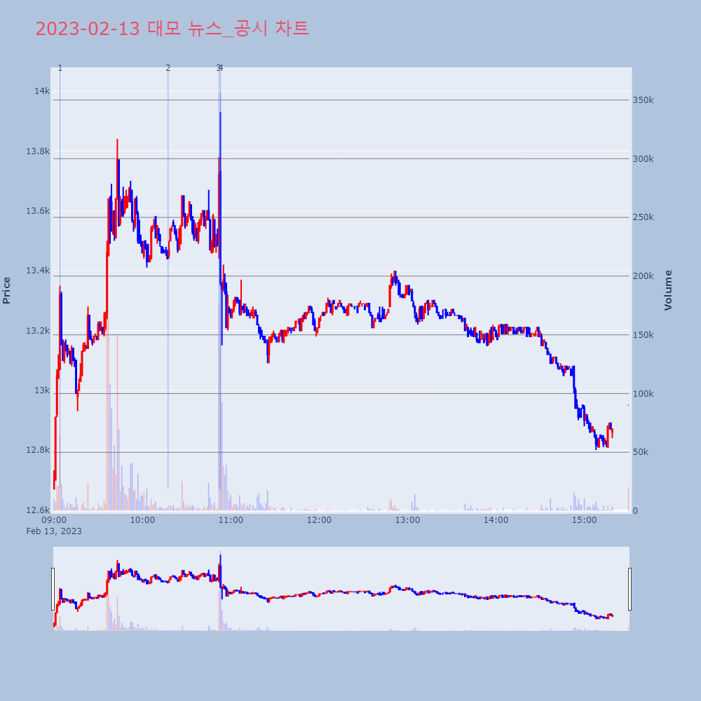 | 2 | [장중수급포착] 대모, 외국인 32,513주 대량 순매수... 주가 +6.15% [서울=뉴스핌] 로보뉴스 = 13일 10시 15분 현재 | 뉴스핌 | 대모 | 2023-02-13 10:17:28 |