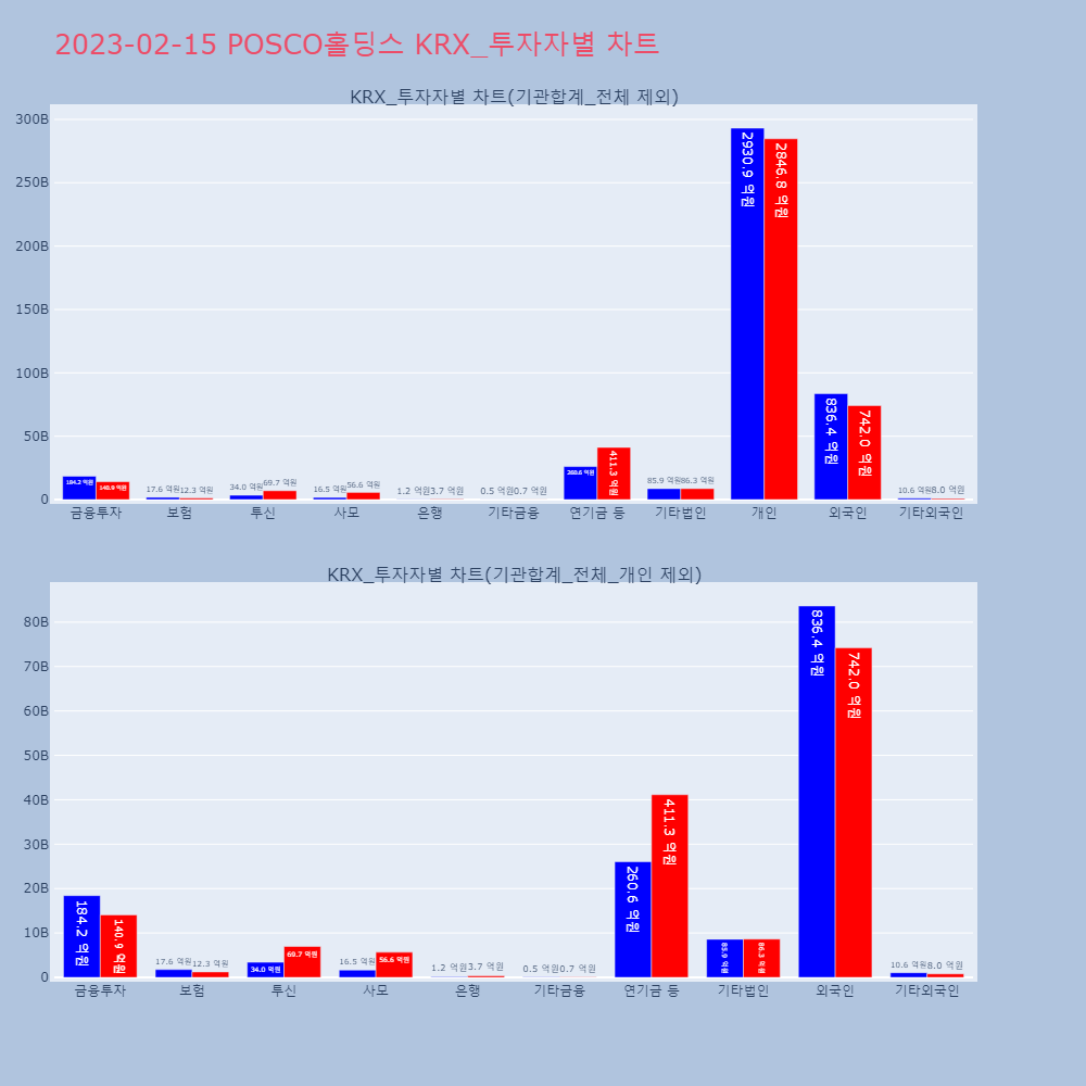 | 6 | 'POSCO홀딩스' 52주 신고가 경신, 전일 기관 대량 순매수◆ 주체별 매매동향- 전일 기관 대량 순매수지난 | 한경/증권 | POSCO홀딩스 | 2023-02-15 09:34:06 |