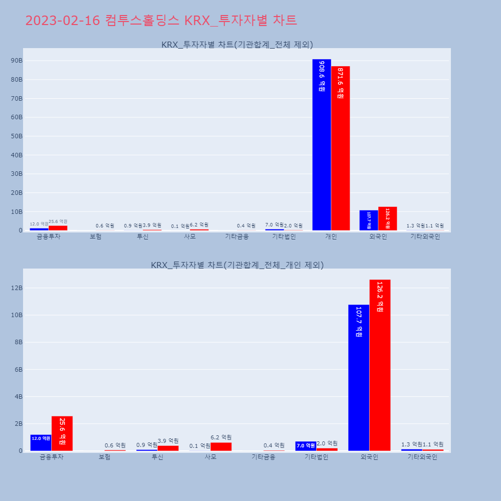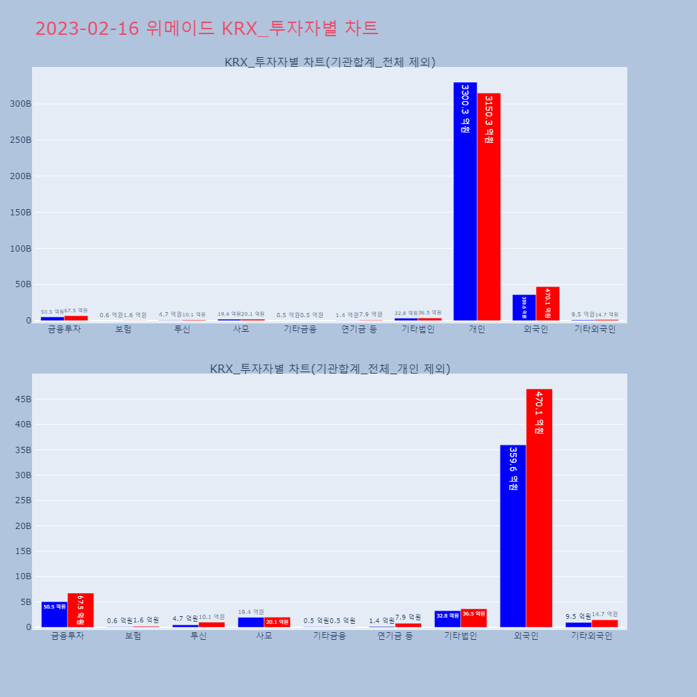 | 투자기관 | 거래량_매도 | 거래량_매수 | 거래량_순매수 | 거래대금_매도 | 거래대금_매수 | 거래대금_순매수 |