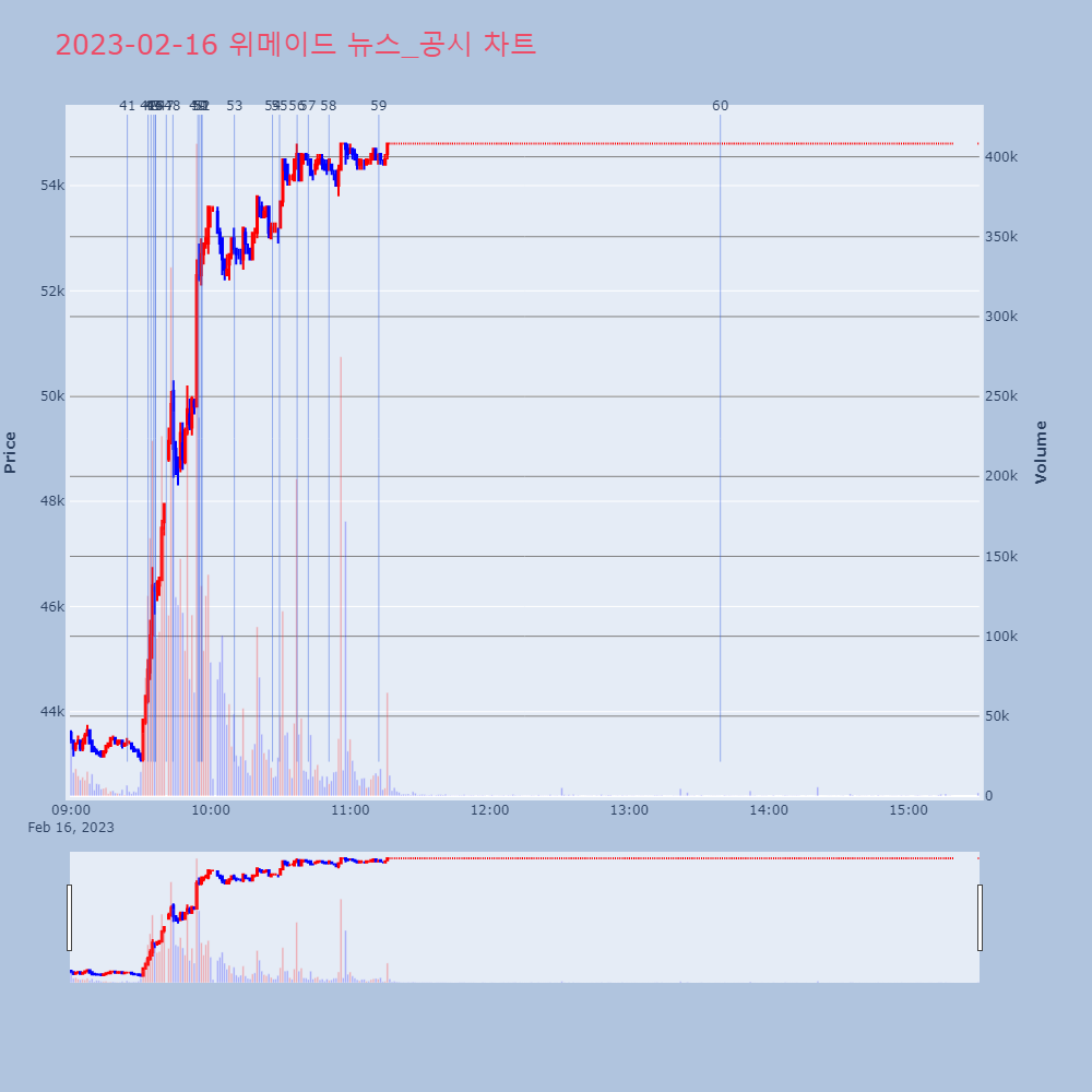 | 4 | 위메이드맥스, +16.57% VI 발동위메이드맥스가 VI가 발동했다. 전일 대비 16.57% | 조선경제 | 위메이드맥스 | 2023-02-16 09:35:31 |