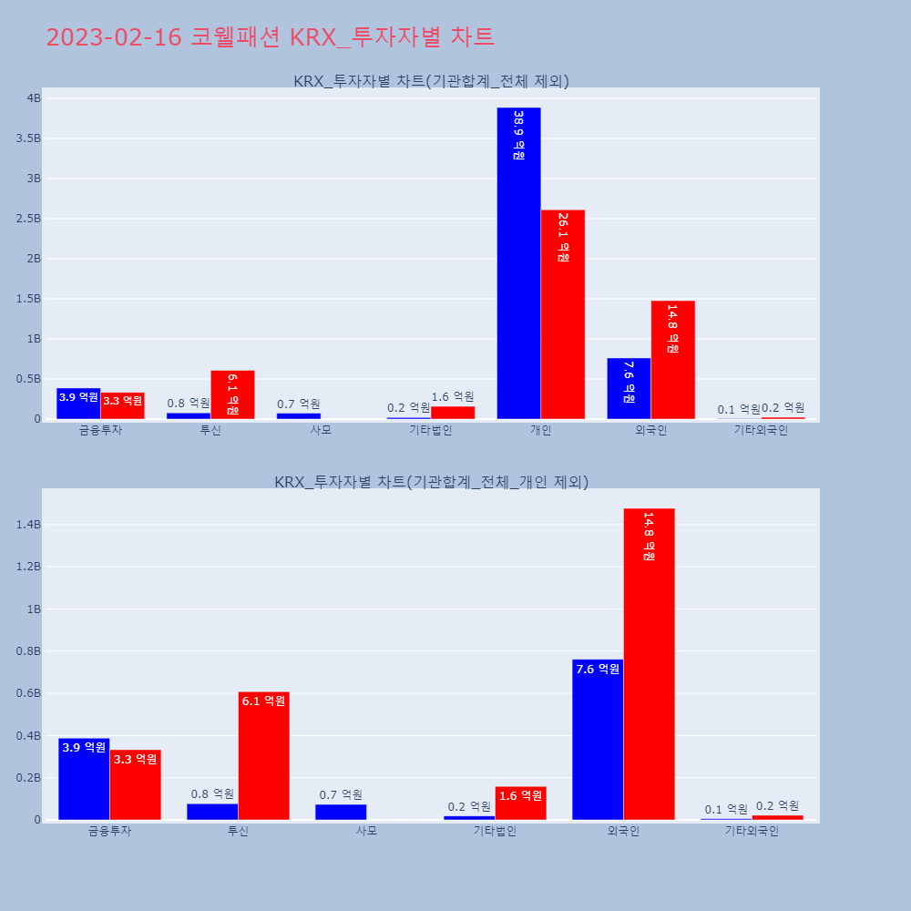 | 투자기관 | 거래량_매도 | 거래량_매수 | 거래량_순매수 | 거래대금_매도 | 거래대금_매수 | 거래대금_순매수 |