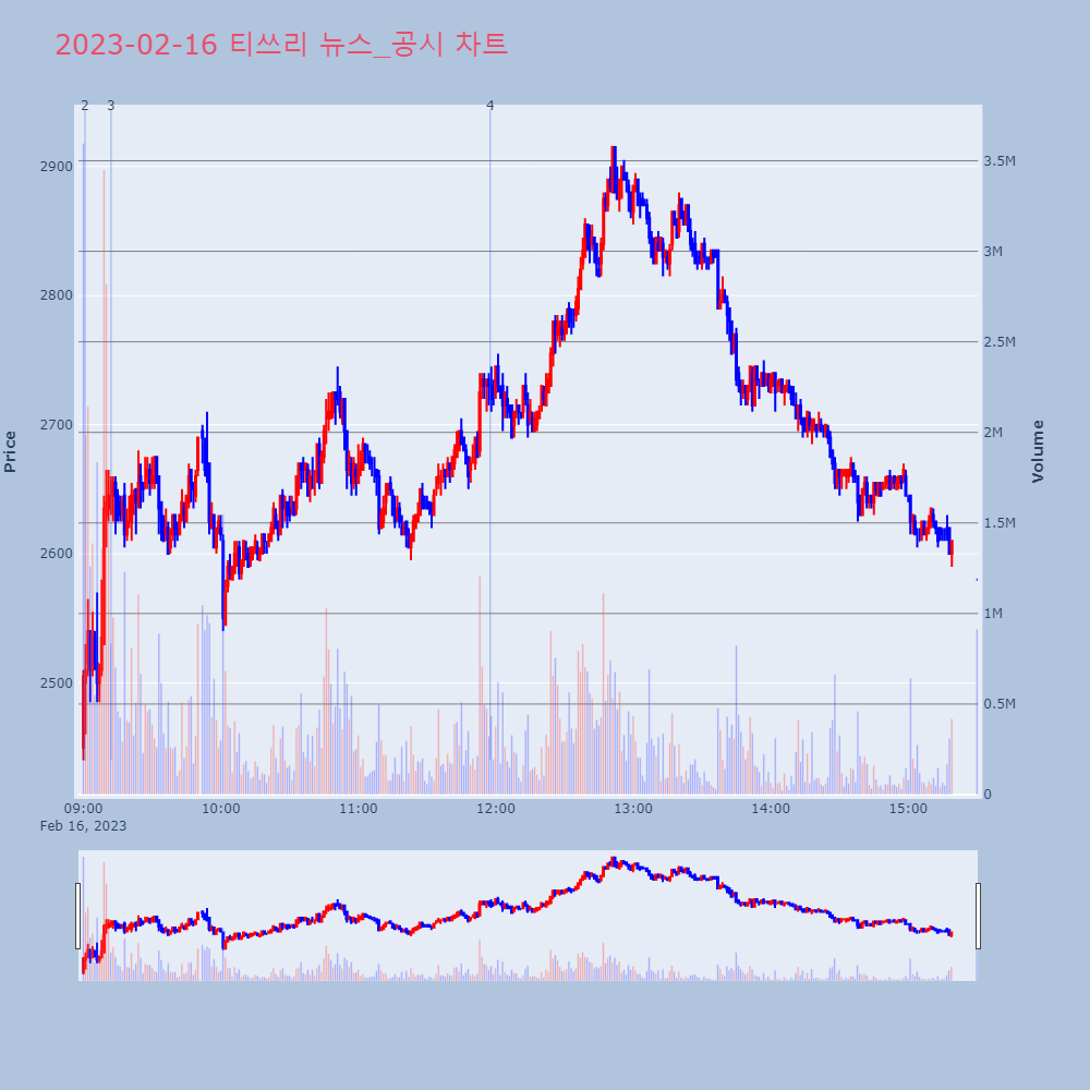 | 1 | [여의도 클라쓰] 이산가족 이슈 '일신석재'·게임 소프트웨어 업체 '티쓰리▶▶▶ 클라쓰가 다른 인사이트▶ 아이린 어드바이저오늘의 | MTN | 티쓰리 | 2023-02-16 00:49:21 |